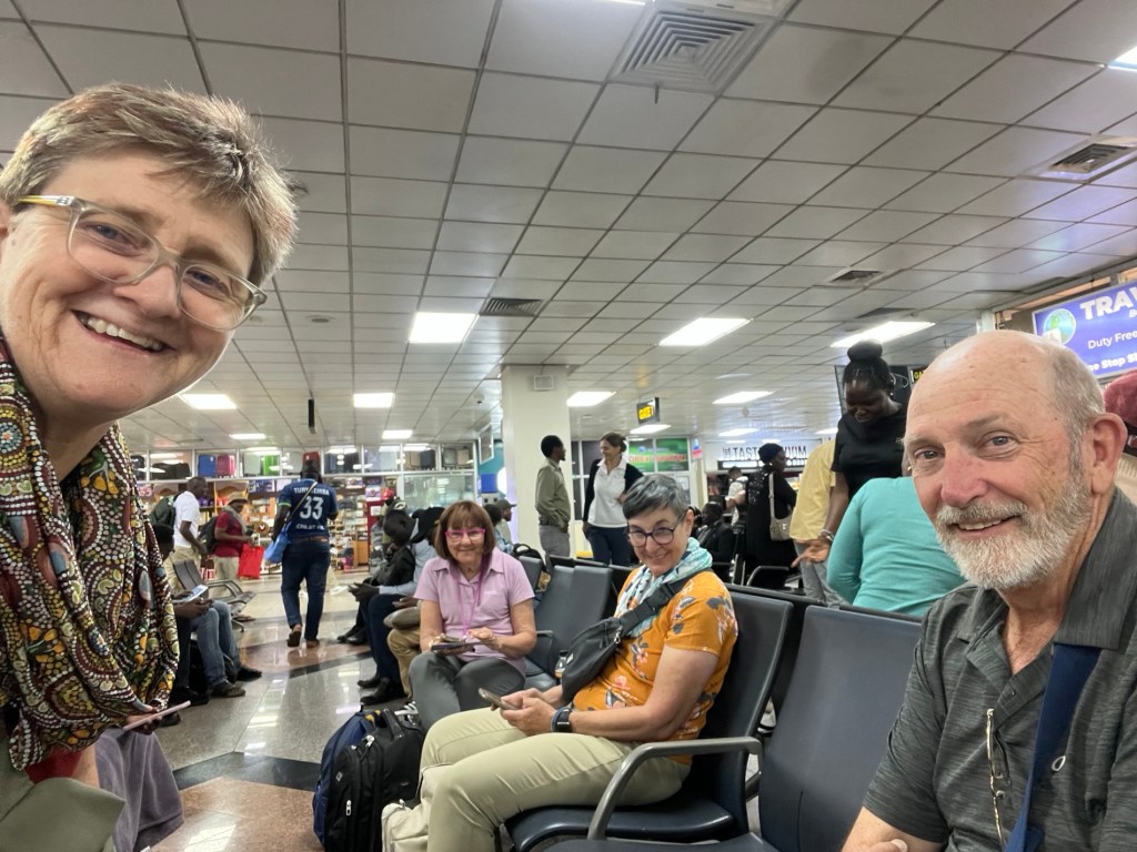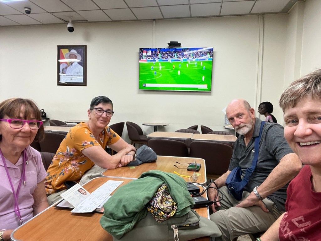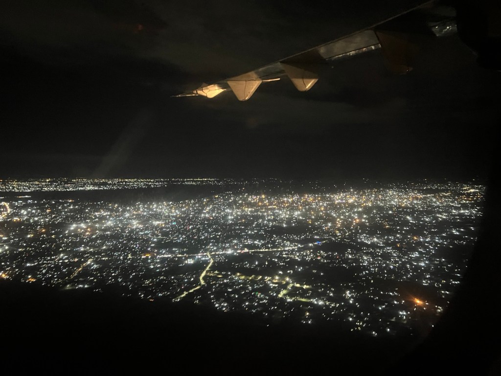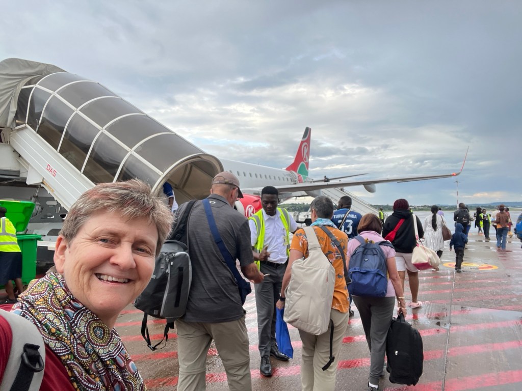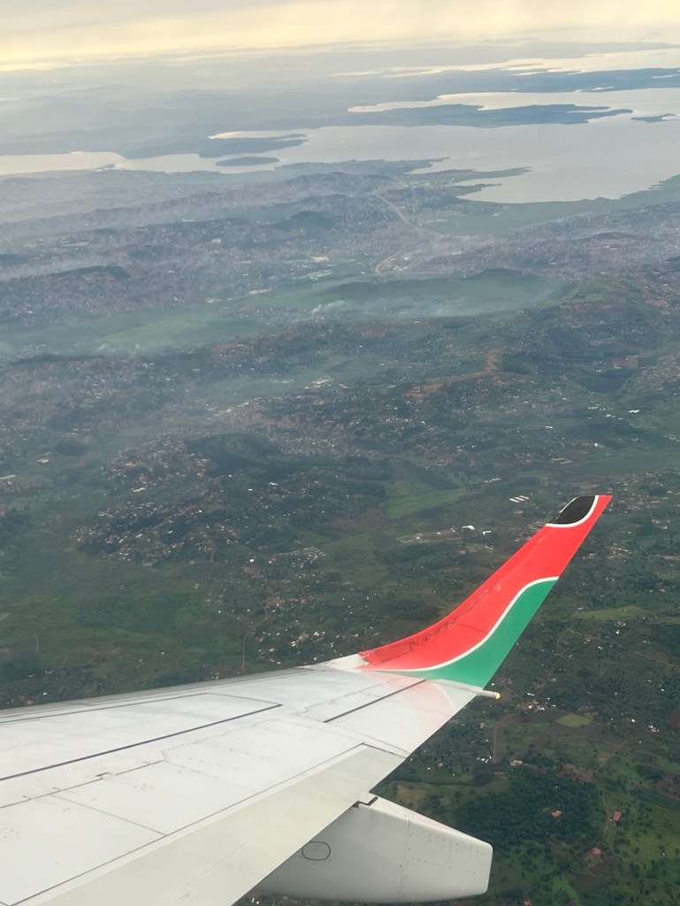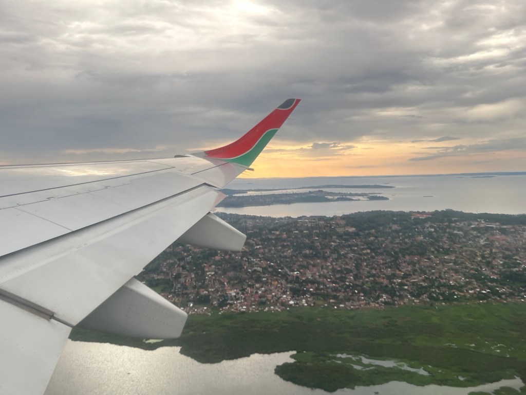 At 8:05 we pulled back from the gate. It’s been raining since we walked in at 12:30am. Within 5 minutes of sitting down the other three are nodding off. I’m on a window so watching intently. We had Lake Victoria on one side and Entebbe on the other. 8:17 we hit the engines and we are finally flying. Yay!!!