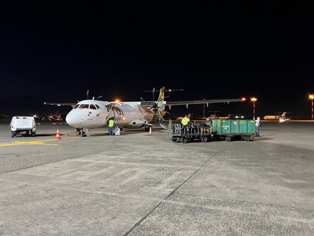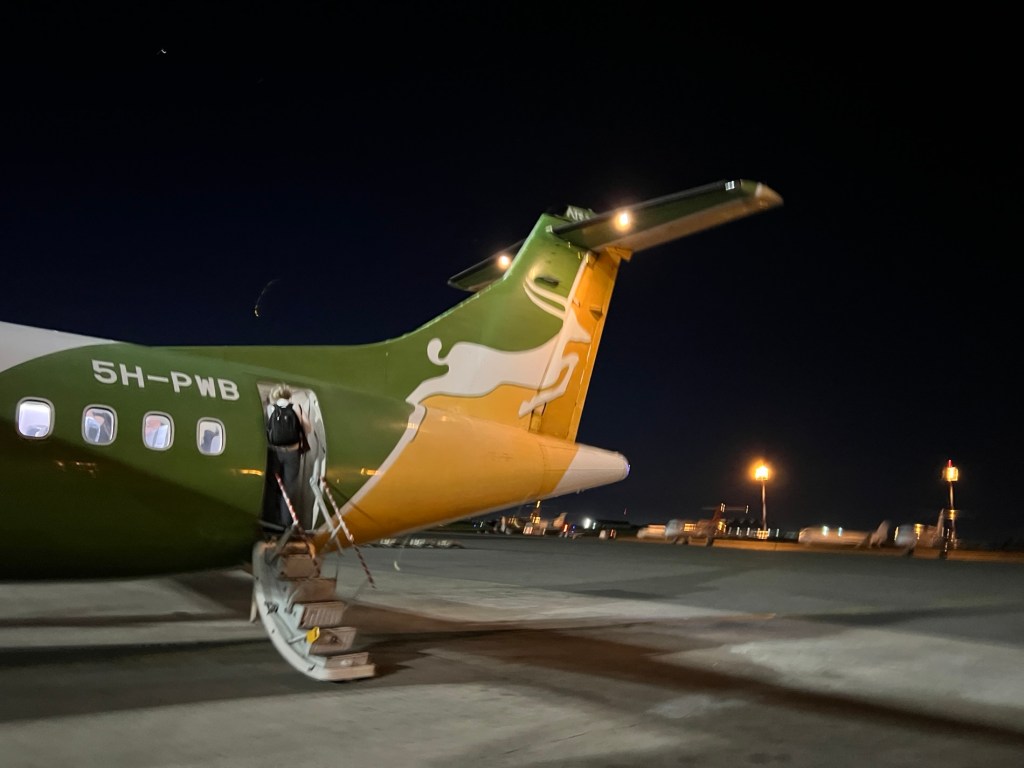 Our Precision Air flight was in a small twin engine plane with possibly 80 seats. It wasn’t full. The flight got away pretty much on time and we landed 45 minutes later at Kilimanjaro Airport. About -16 people got off the plane and the rest were heading for either Zanzibar or Dar Es Salem.