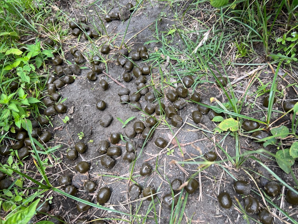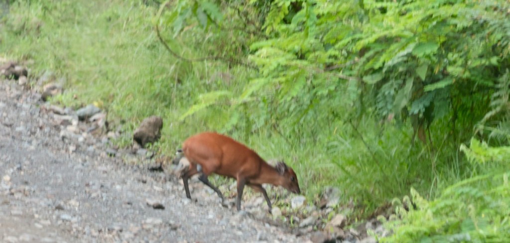 Red Duikers (rarely seen) fuzzy pic. – a Pygmy antelope.