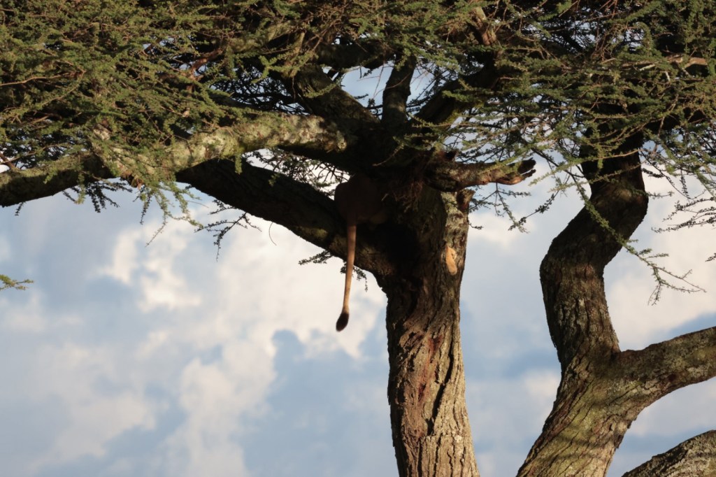 Trying our hardest to get to our accommodation then JB spotted a tail hanging from a tree climbing lion up an acacia. Just so warm on the golden hour light. JB has named her Jennifer. She was looking at us.