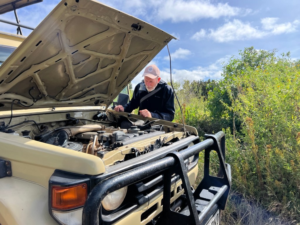 A bit of excitement coming down the one way track into crater. Electrical smoke emanating from the dash. The inverter had been pulsating and our phones wouldn’t charge so we think that was the cause. We bailed out and grabbed our small bags with money and passport etc. took some foliage photos while Phil and JB tried to sort it out. Another vehicle and guide stopped to assist. Disconnected the battery and ended up disconnecting the inverter by breaking the wires – no more in vehicle charging of devices for us. The fridge still works and we were on the road again. Later discovered no wipers and some instruments not working.