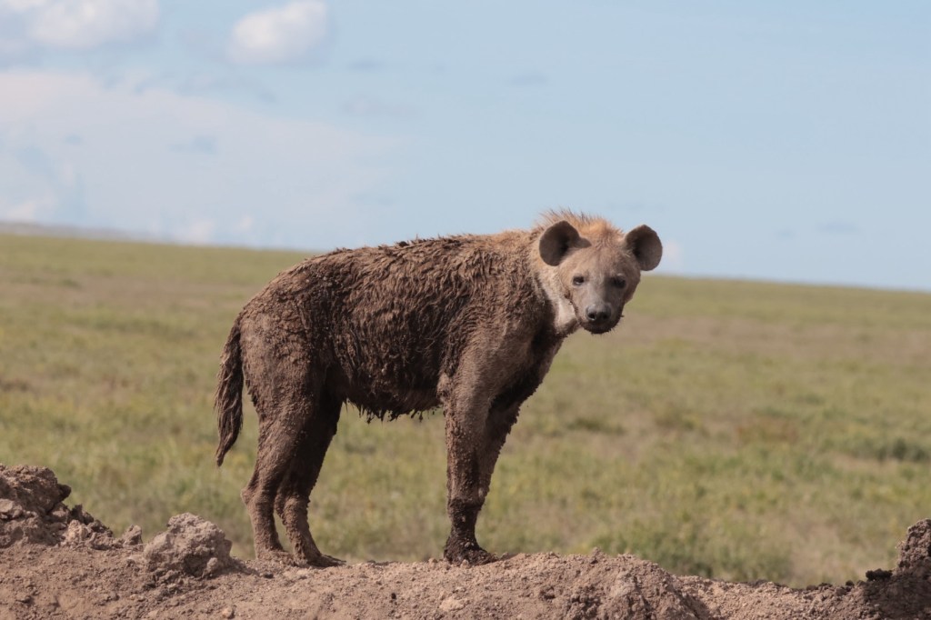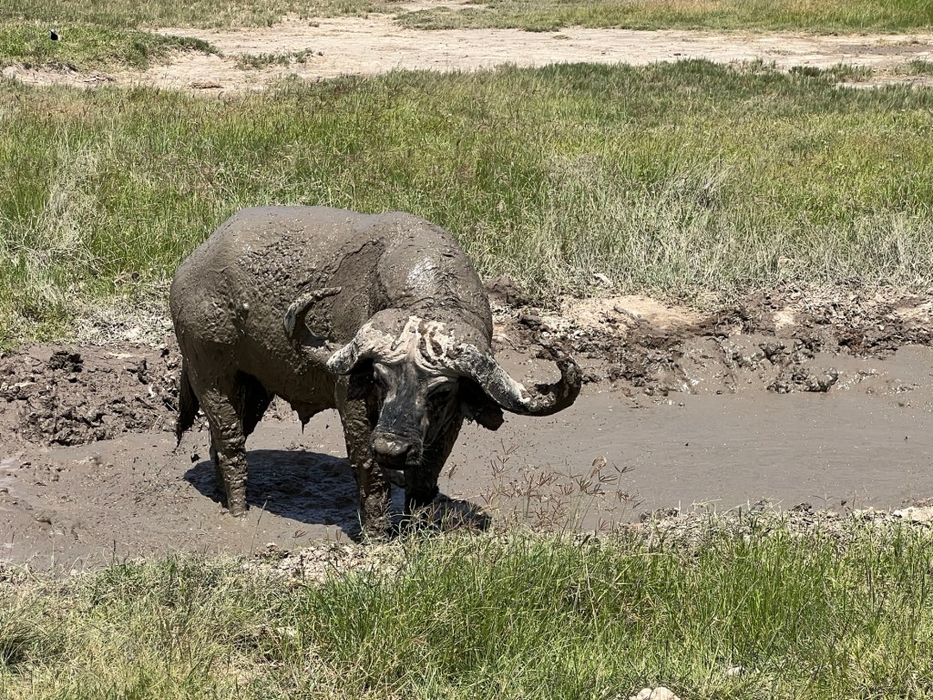 We came to an area with heaps of Wildebeest and 2 Hyena. The hyenas were wallowing in the mud to cool off. One walked out looking like a ‘choc dipped hyena)