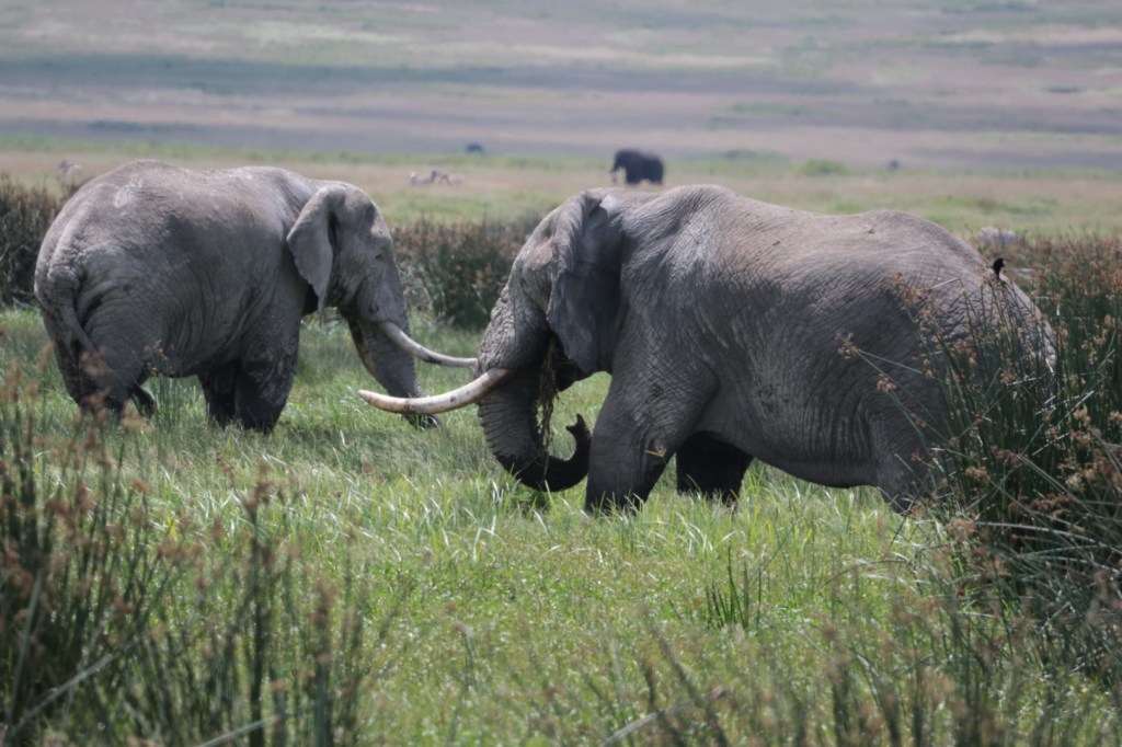 The crater is called the elephant graveyard. These guys are around 60. Each elephant has 10 sets of teeth in their lifetime. Each set lasts approximately 10 years so by 60 they have to start taking care of their teeth and they come to the crater for the soft swampy type grasses. They look older and more wrinkled too.