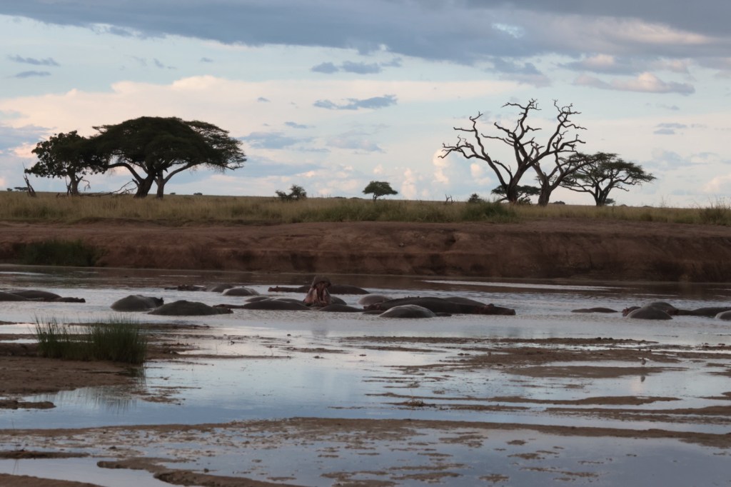 Just around the next bend was a school of hippos in a river bed. Quick photo stop and off we go.