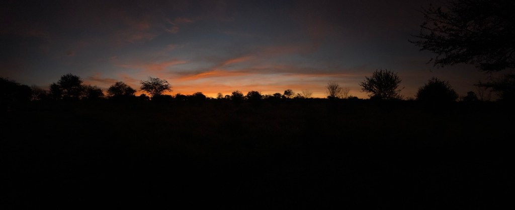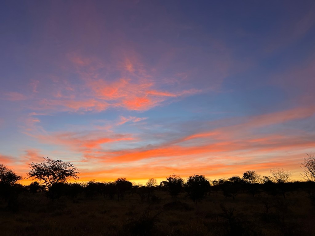 Beautiful sunrise through the midgee mesh. I went out to the veranda to take a few shots. Quintessential African Silhouette sunrise.