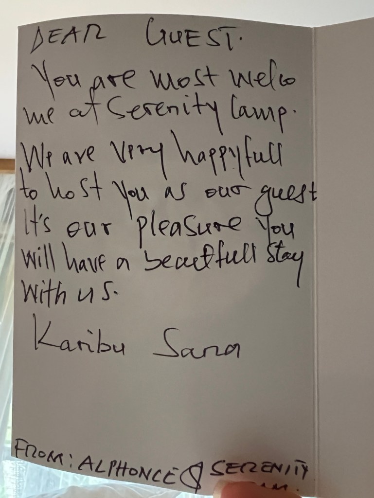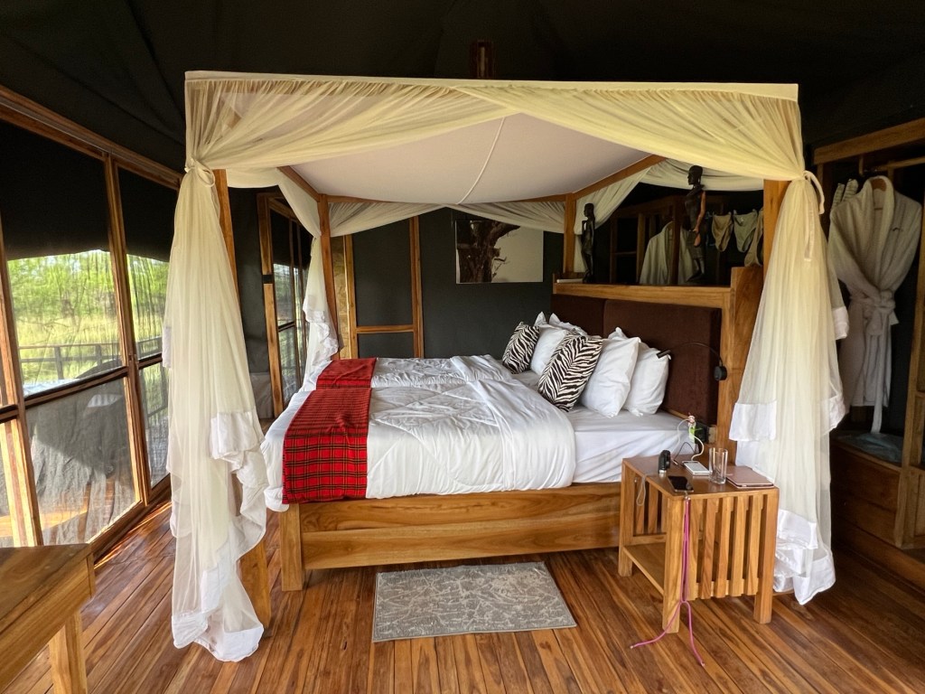 Our accommodation for two nights is a tented lodge – so we are sleeping in canvas tents under a roof.