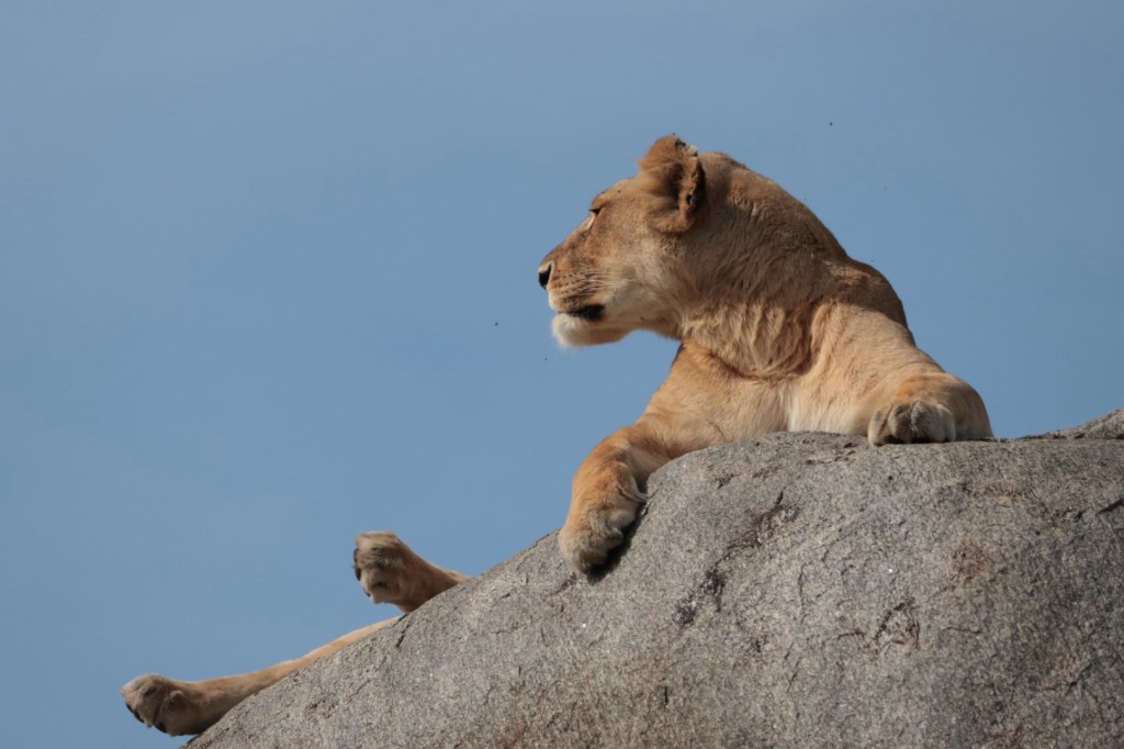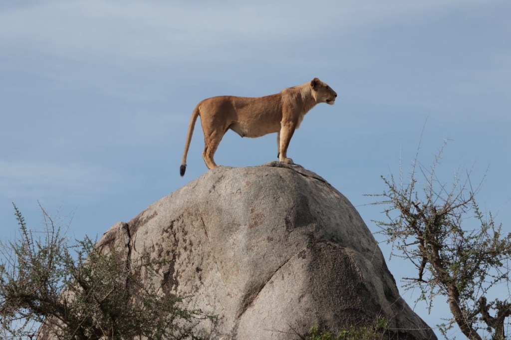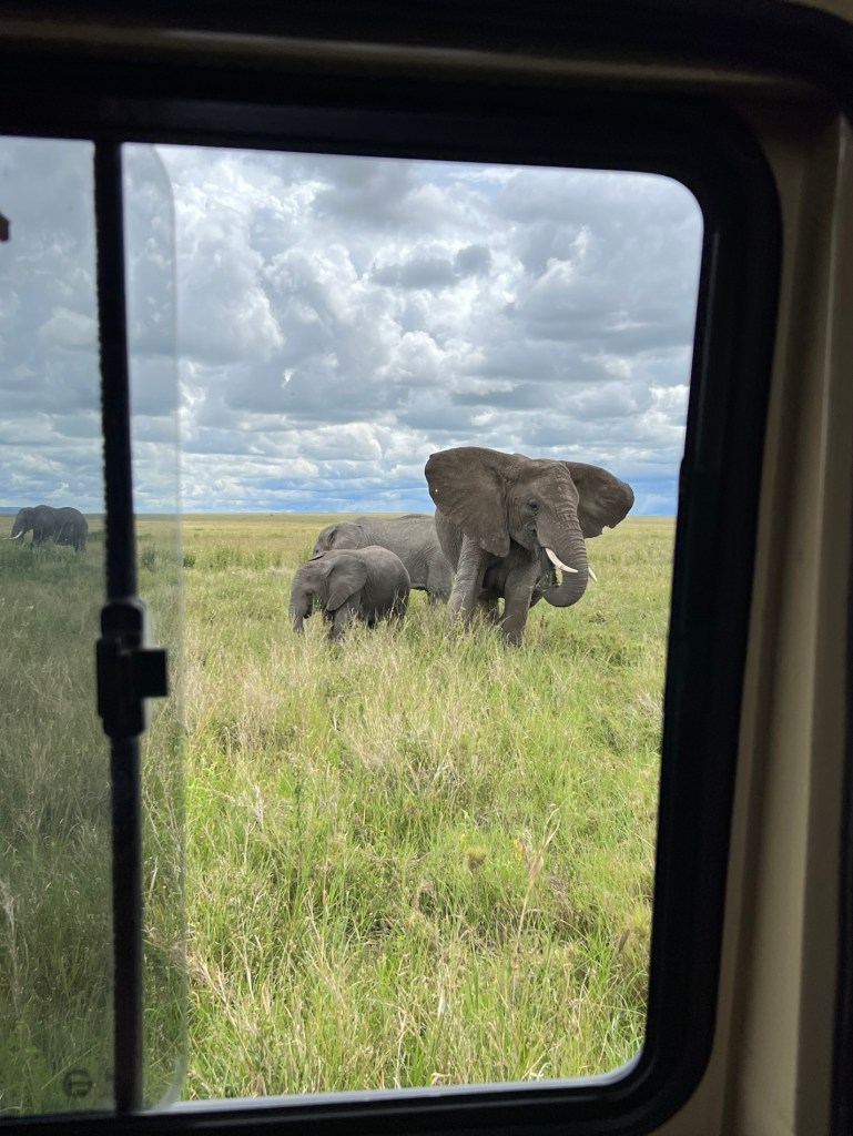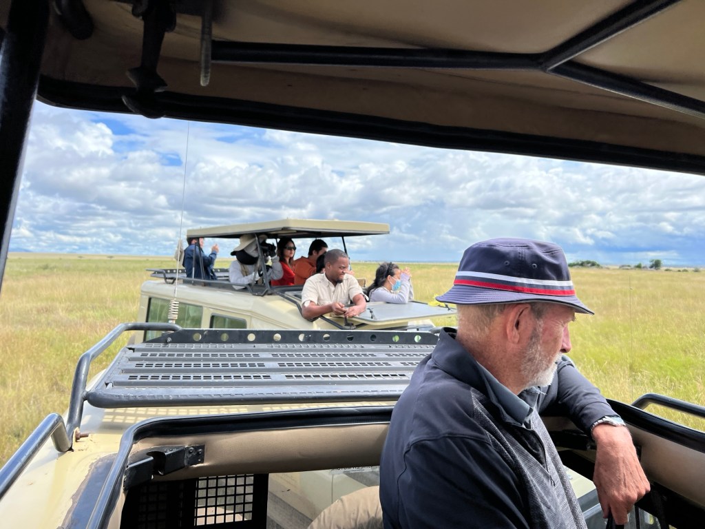 The Serengeti plains are like grassy, with wildflowers throughout. The taller grasses bend in the breeze, tiny birds cling to the taller grasses and sway with reed. There are occasional trees, but thinning out as we drive through the day. Every so often JB pulls up and scans the horizon with his binoculars