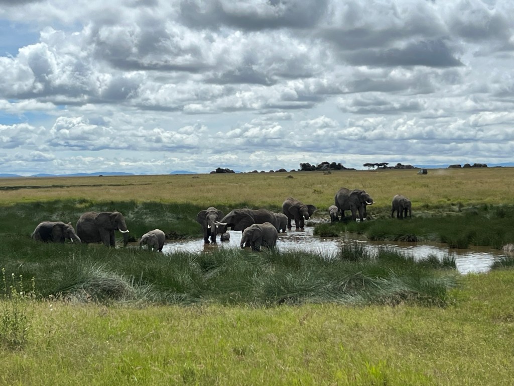 The next big things was many big things, in fact 5-7 families of elephants moving behind a kopje, then they moved into the marsh and it has us (and several other vehicles) enthralled with their antics. Walking, eating, playing, swatting with reeds, throwing water, drinking, pooping, lying down and oh so struggling to get up again, scratching their legs, dust bathing, and so much more. Mesmerising. I’d hate to think how many megabytes we’ve burnt between us. So close we had to use the iPhone for wider shots.