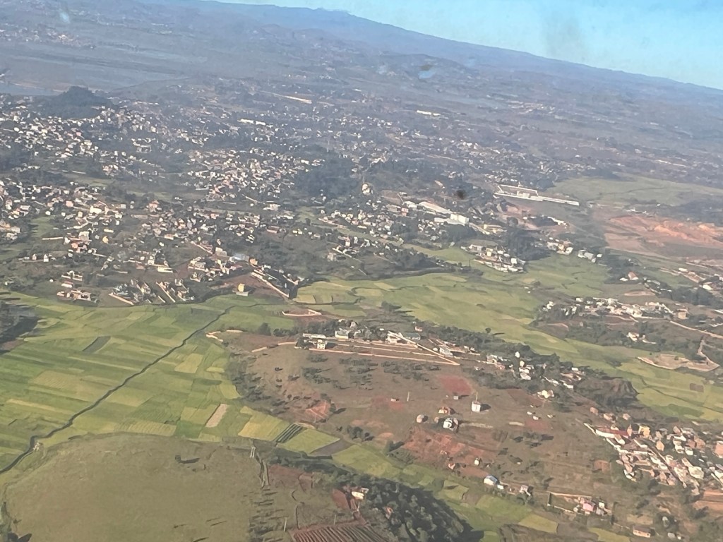 The country looks pretty rugged from the air. Around Tana there is lots of buildings on hills and flat land/valleys seem dedicated to crops/farming. The land is hilly, with very few trees around Tana. I also noticed quite a bit of water – lots shallow possibly for rice fields.