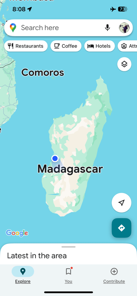 We landed in Morondova at 8:18 after having departed slightly ahead of schedule.