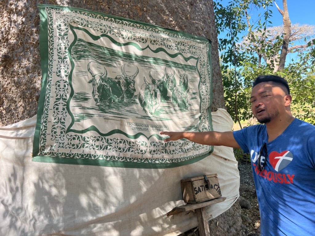 Pregnant seek fertility. They offer rum and honey and will also pour the blood from a cow (also sacred at the base of the tree) they place cloth around the tree and the cow sarong (pictured ) had a saying on it.