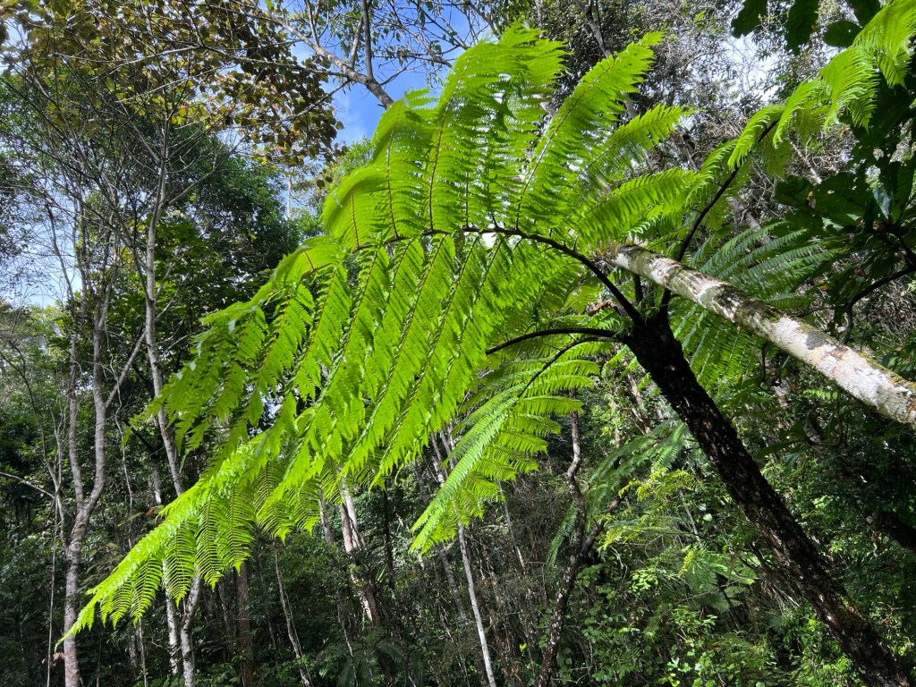 Dessie pointed out a Tree fern near a bridge over the creek, known as a ‘Dinosaur Tree’ as it’s been around since the time of dinosaurs and is a match to the tree ferns of NZ and this one is over 1000 years old.