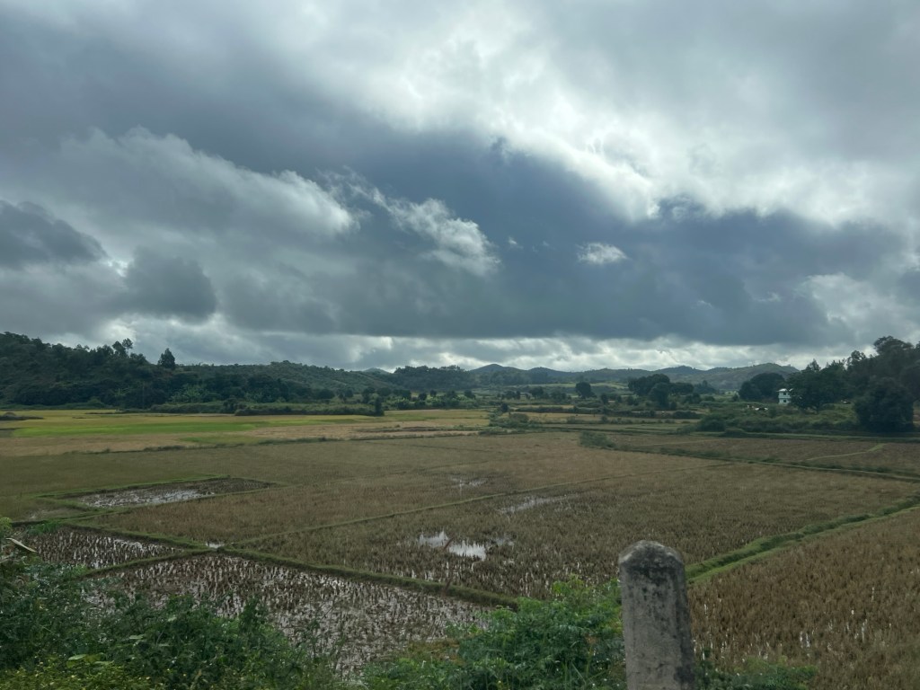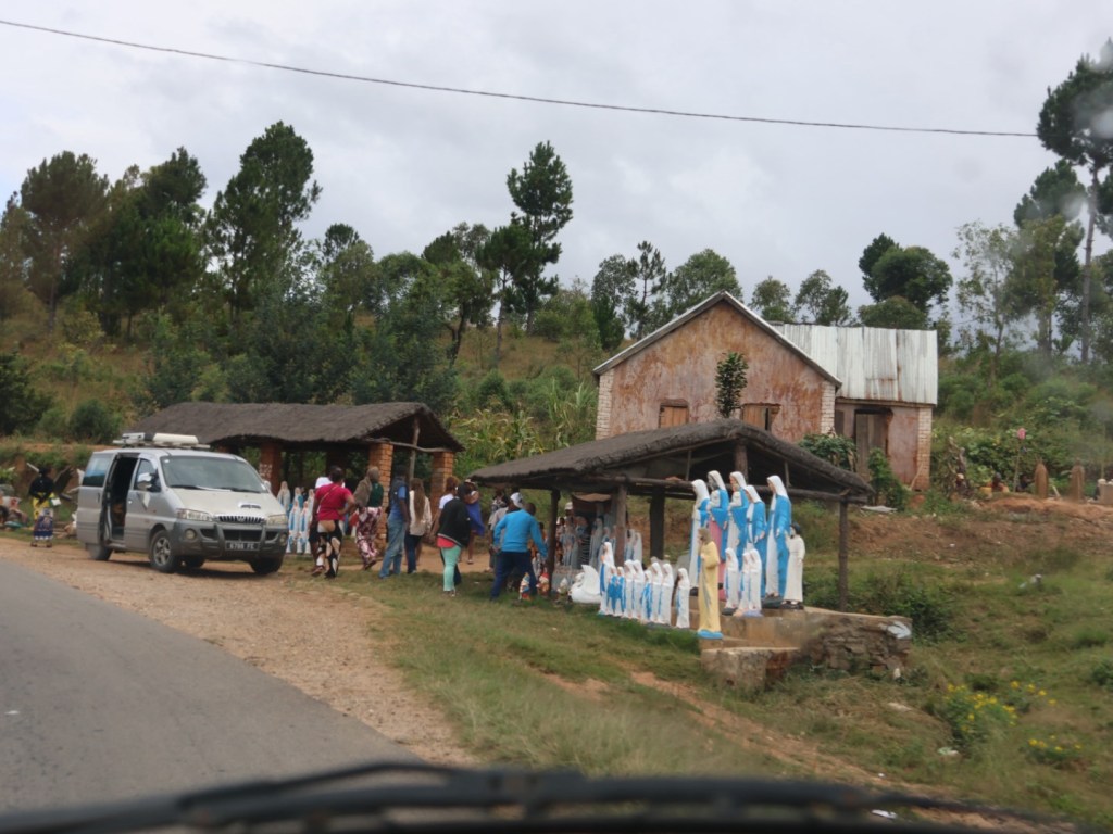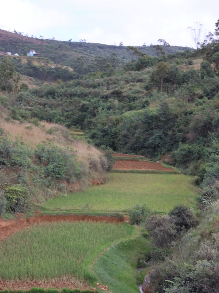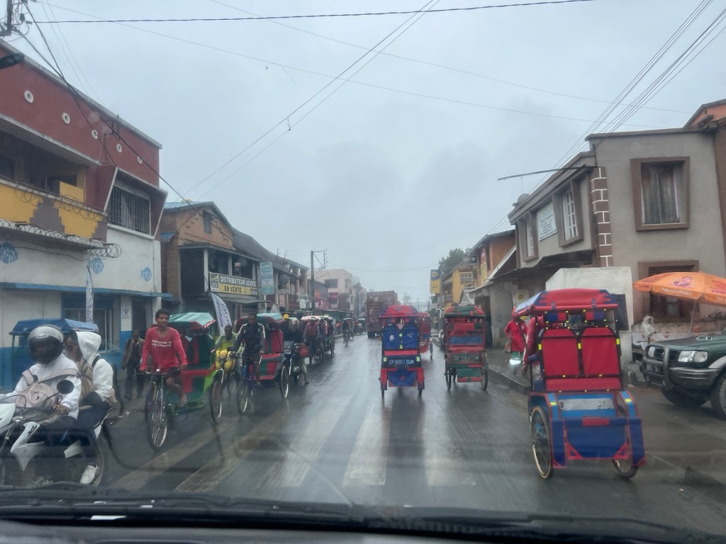 We left this morning in misty rain which cleared on the other side of the hills, back into rain after lunch and we arrived into Antsirabe (btw the last consonant in most words is not pronounced)