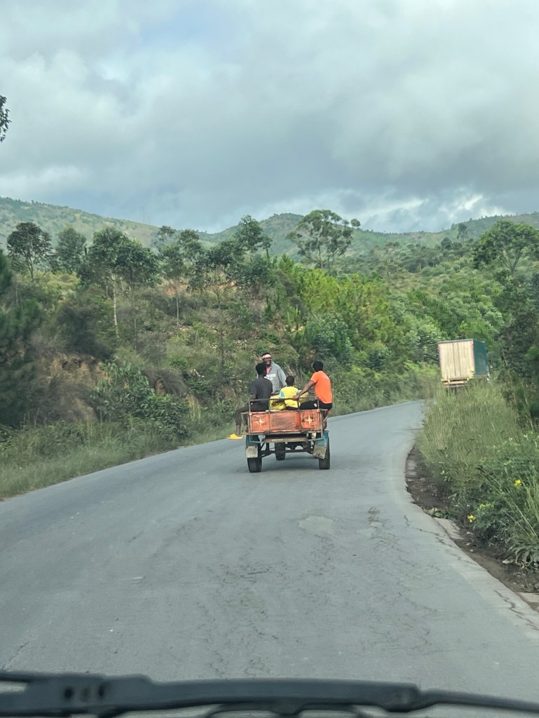 After a pizza lunch we turned onto National Route 7 to head south to Antsirabe – another 170kms. This morning was just on 3 hours with one loo stop and break for observations.