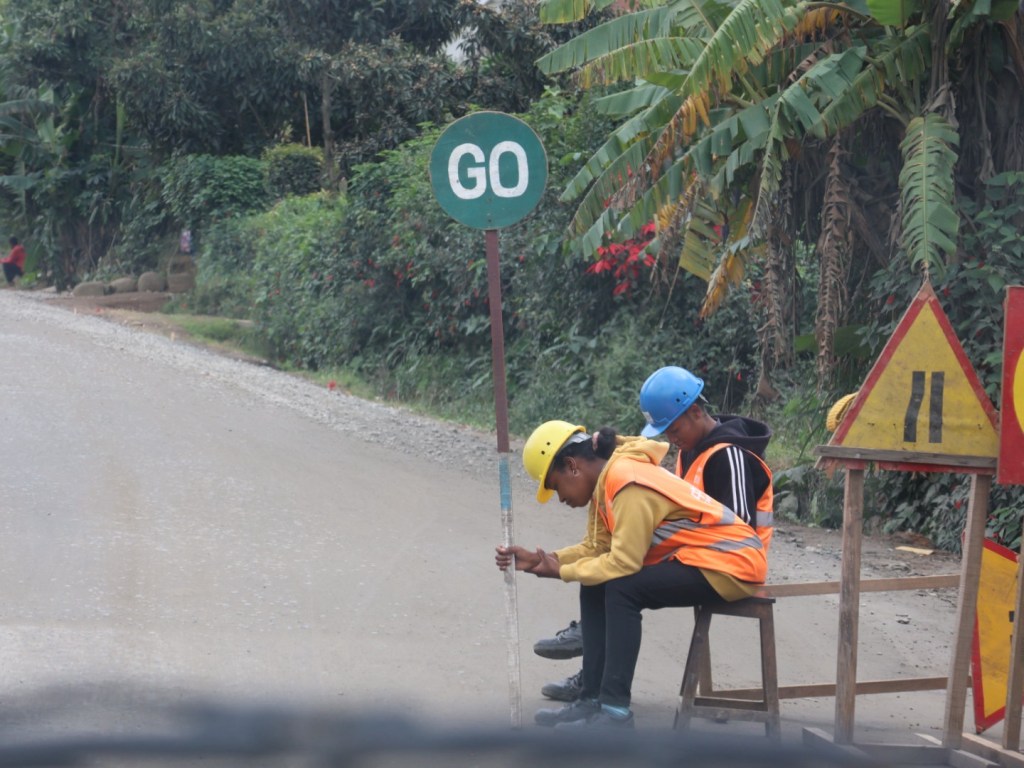 The horn is a key tool to warn we are coming through and for bikes and pedestrians to move to the side – although at times we have to slow down to push bike speed as they have nowhere to go. Then there are speed humps and decaying road repairs. He ducks and weaves and slows to ensure a good ride.