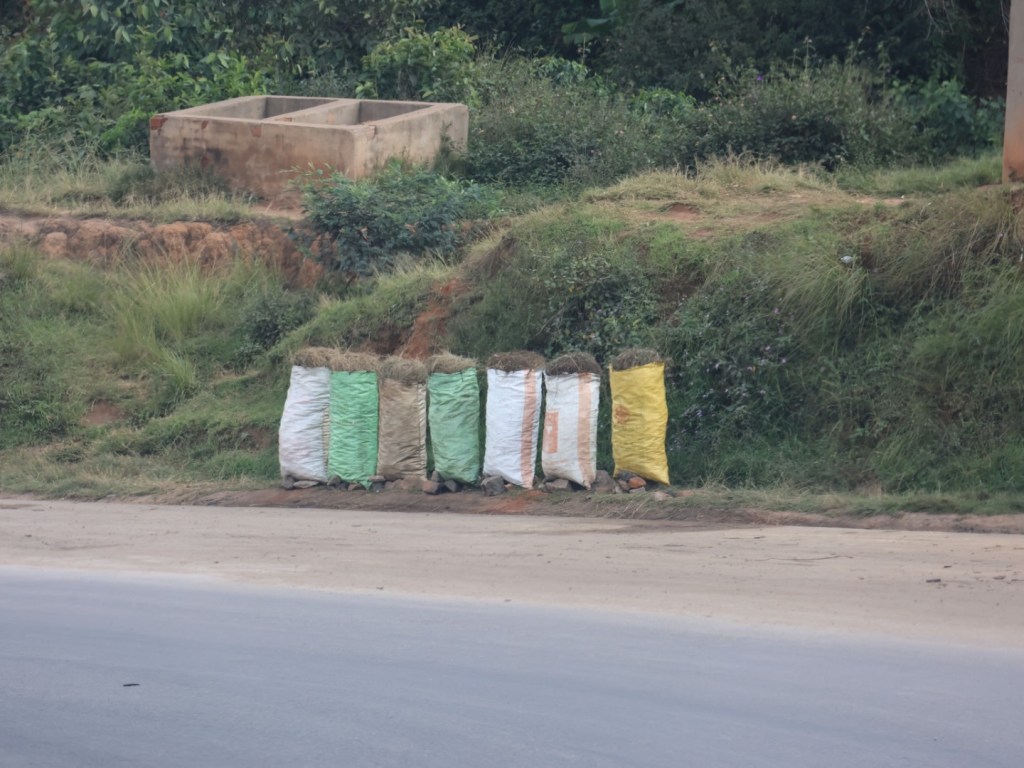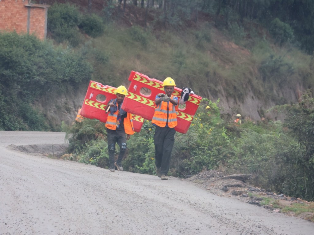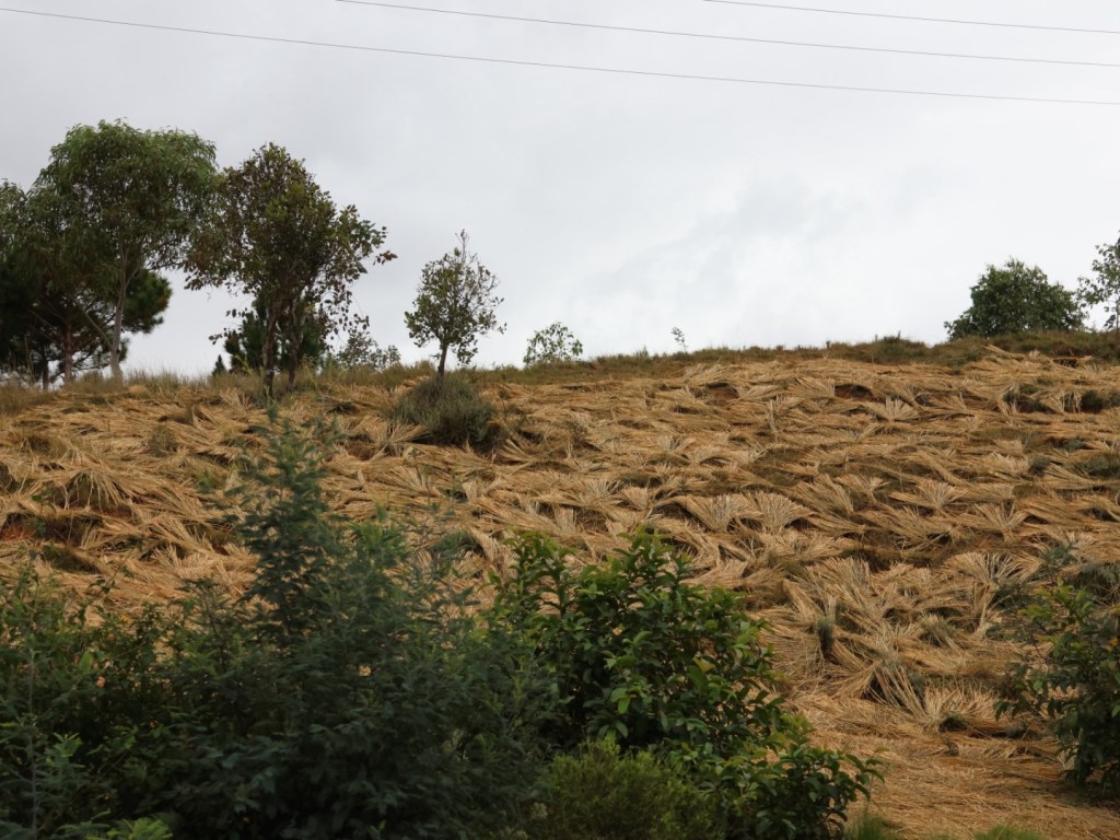 The people reap and harvest, cut and crush and collect anything and everything they can to sell. (Firewood, sand and rocks from rivers or mountainsides.) There are stalls with neatly piled bunches of goods just by roadside, some at the market. Pigs, geese, chickens, rabbits, then there is prepared food as well. And more peanuts, corn, hand sawn planks, cut grass for Zebu feed, whisky, beer, rice cakes, fruit and veg, crushed rock, granite, drums, guitars, violins, grass for broom heads, brooms, charcoal, meat, carrots, persimmons, corn bread, loquats, cabbages, pickled onions, radishes, avocados, bananas, pebbles (smooth river rocks) baguettes, toy wooden trucks, ducks, geese, turkeys, ottomans, pot plants, vases, urns, stature of Jesus, statues of dogs, eagles, lots and lots of car/bike wash stations, tyre and vehicle repairs. Also along the route we saw pine and eucalyptus plantations.
