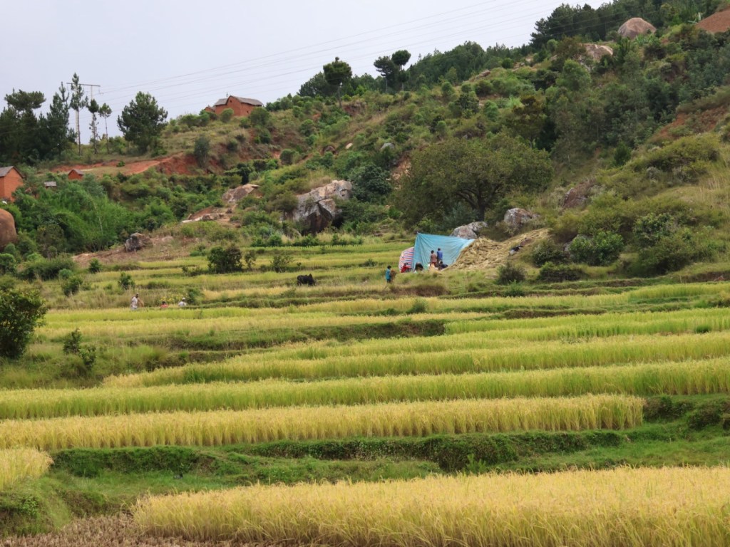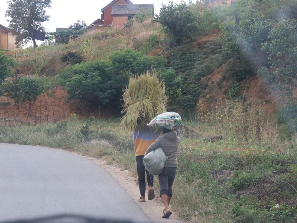 Then there is rice, everywhere rice, in the fields at all stages of production. Rice being cut by hand, threshed by hand, laid out to dry on roadsides and hillsides, in bags being carted on heads, shoulders, Zebu carts, tractor carts, man powered carts.