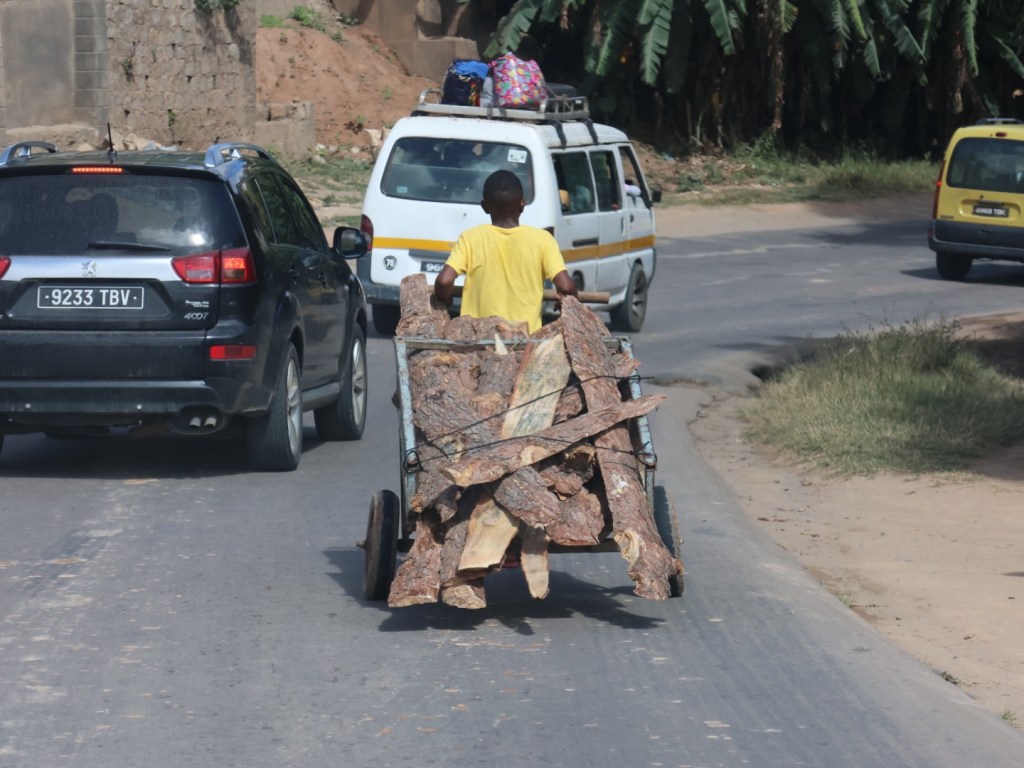 Nico has a fine line to drive between traffic of all kinds, nasty potholes, sharp drops off the bitumen.