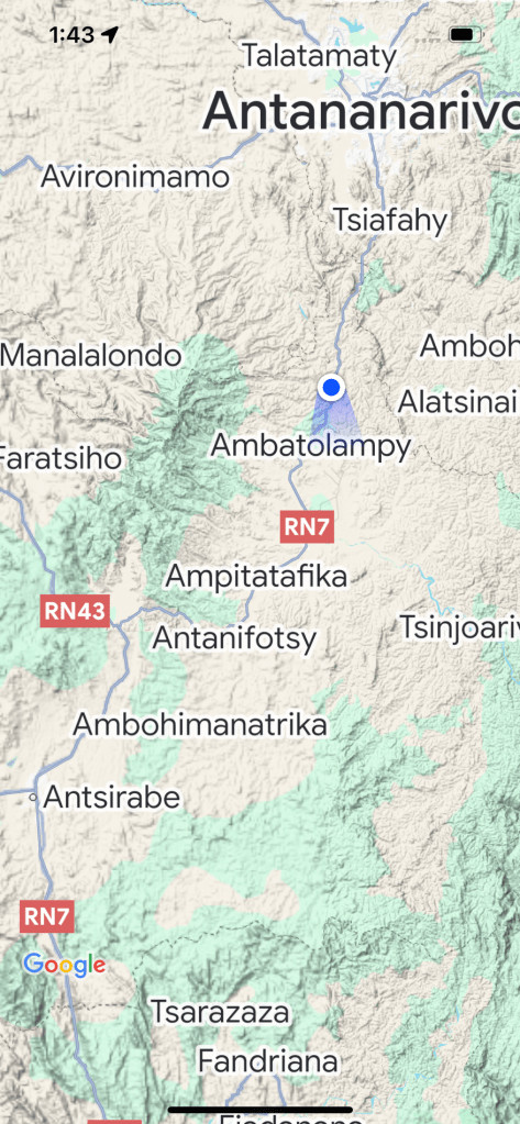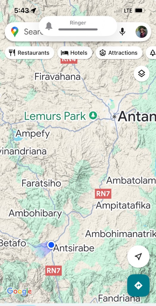 Andisibe to Antsirabe – via National Route 2 and 7.