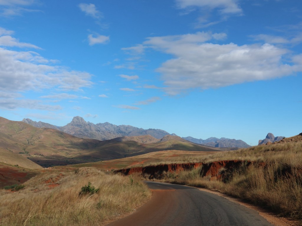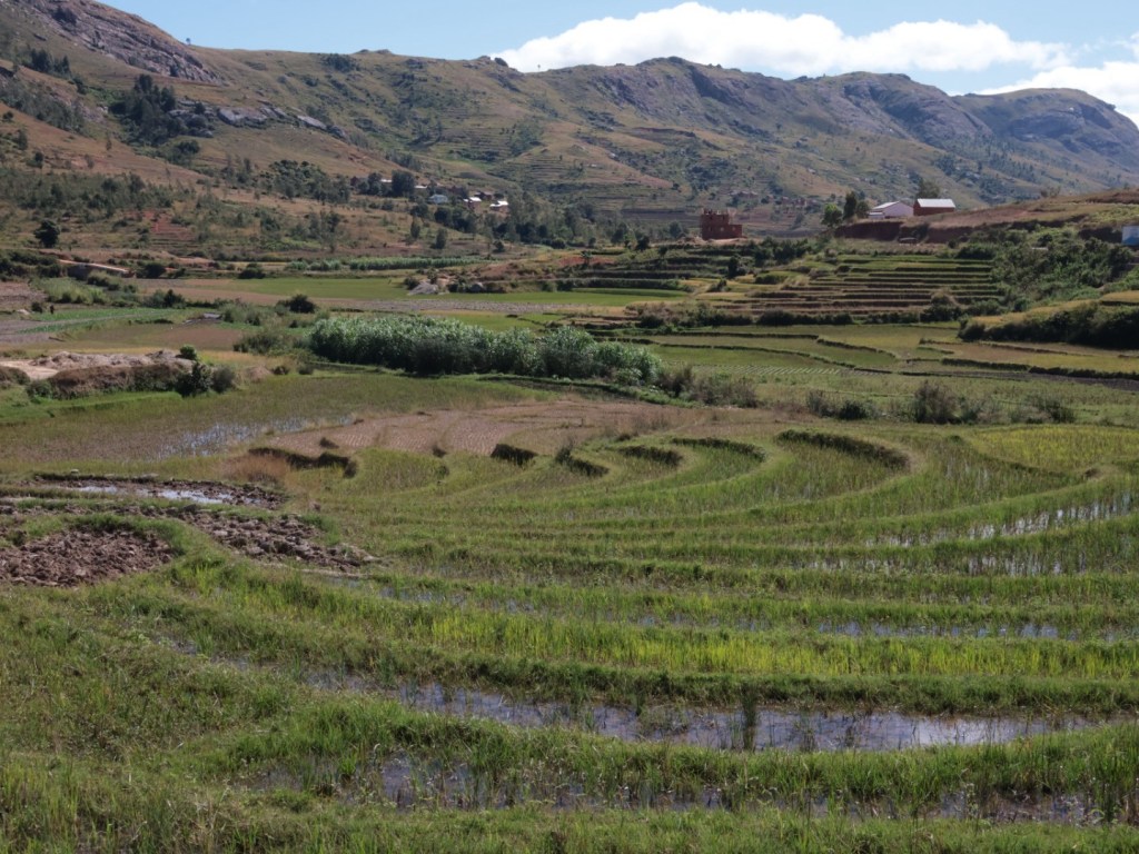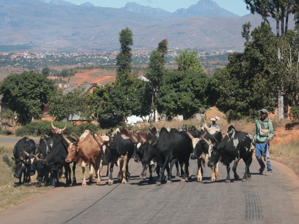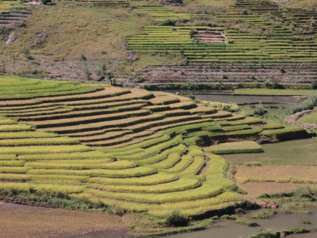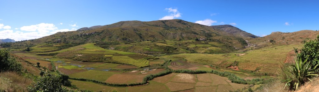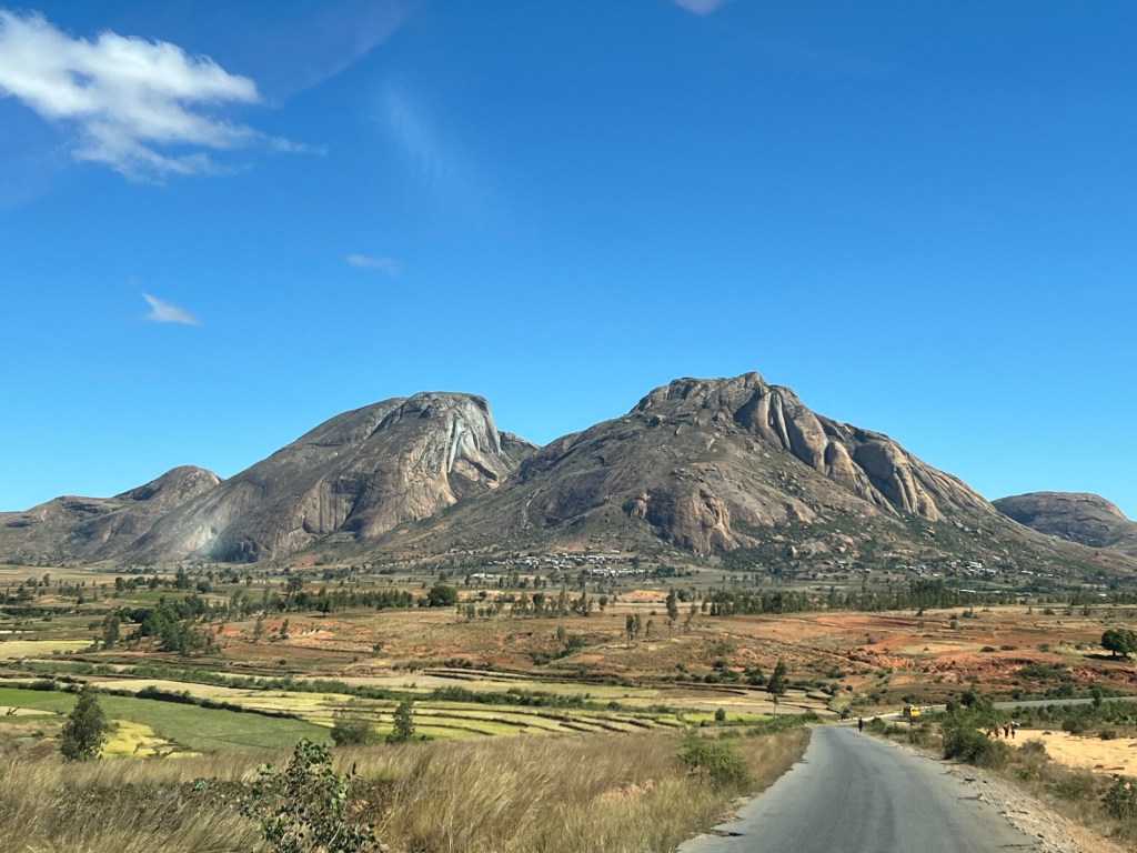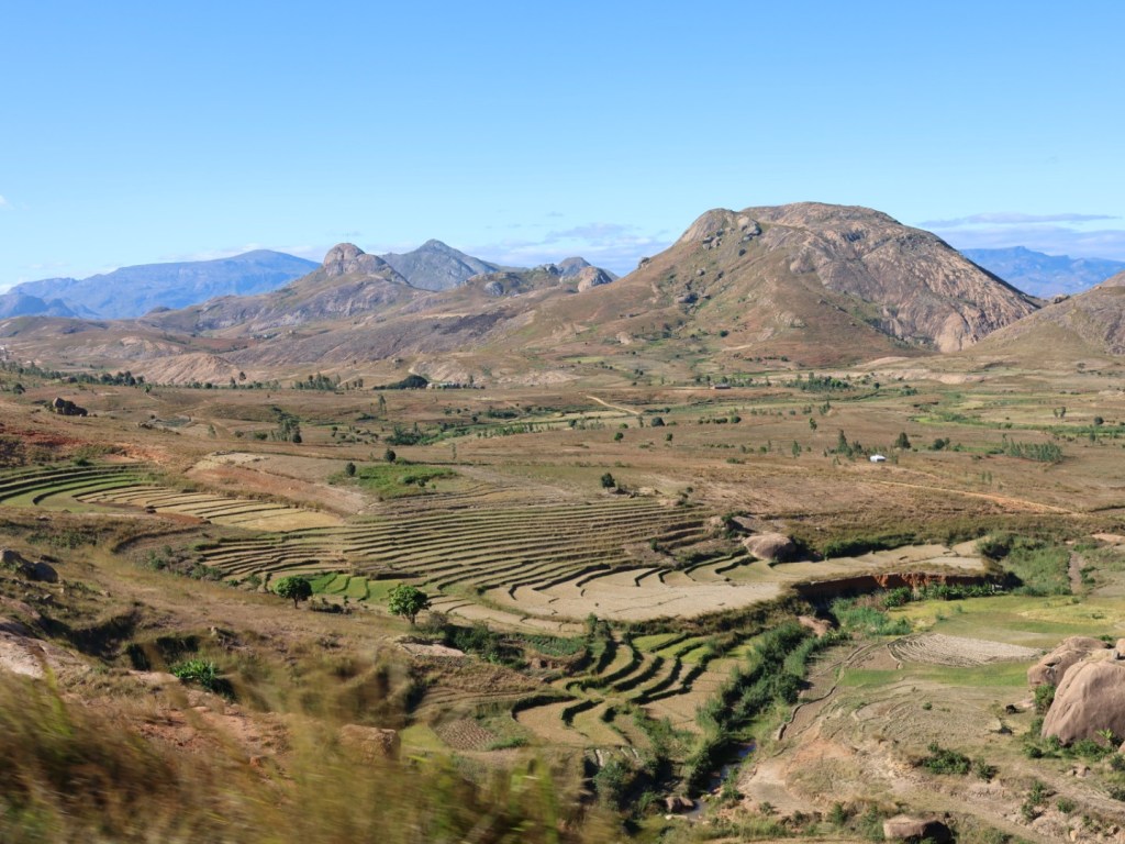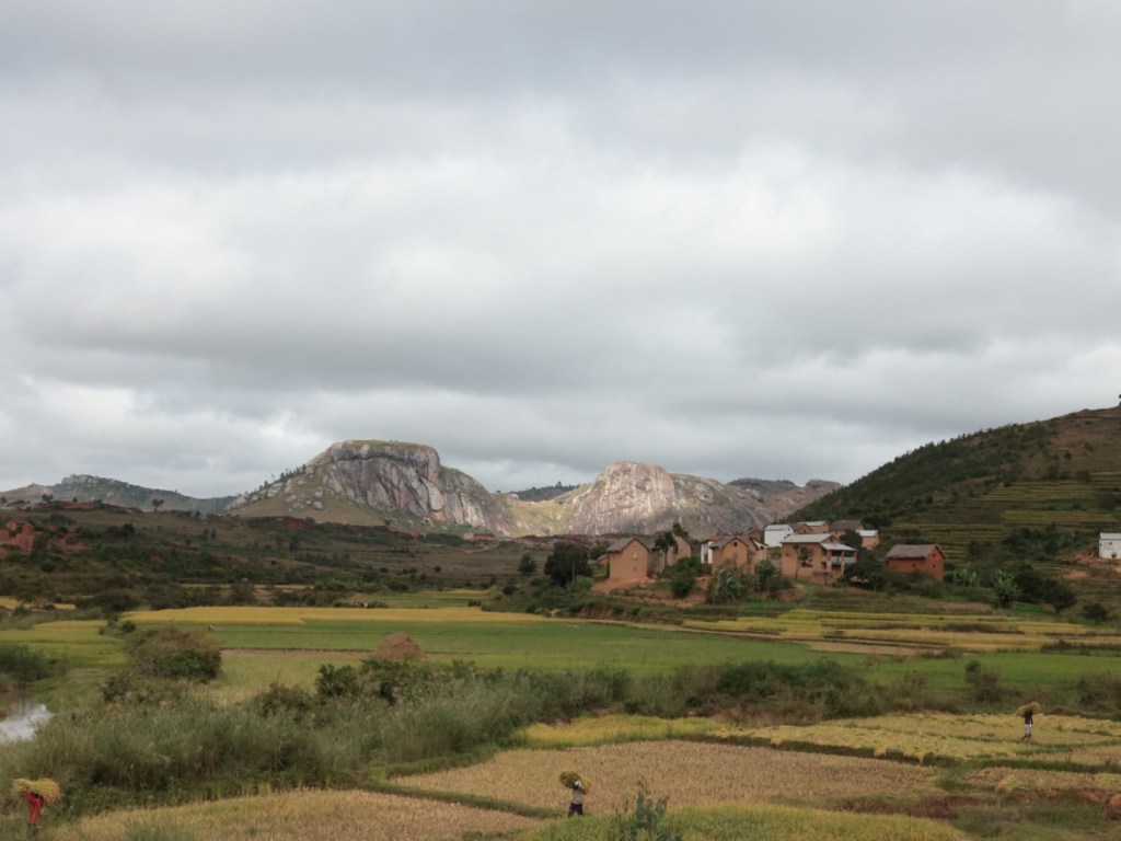 The Granite Massif Mountain range has lots of different peaks and names. There is a public and private reserve, the private one is community owned and supports the community. They certainly dominated the landscape, which has changed now to more like Savannah grasslands. There is less terracing evident, though the valleys and riversides are well utilised. And there is still a lot of rice And other crops on the flats. They dry the rice in all sorts of places including the road surface.