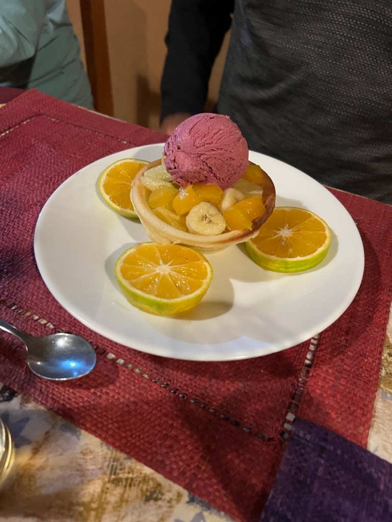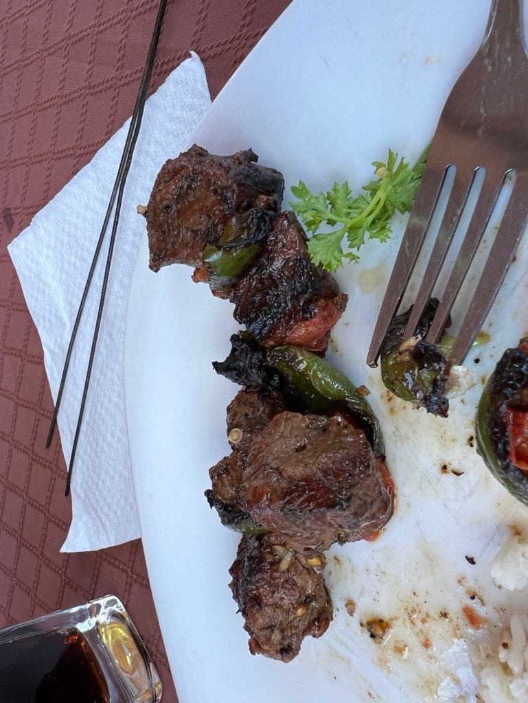 Lunch we had ordered on arrival and we returned to Jacaranda’s to eat (an hour behind time) we four all had the Zebu skewers and shared our sides of rice / sautéed visitors/fries.