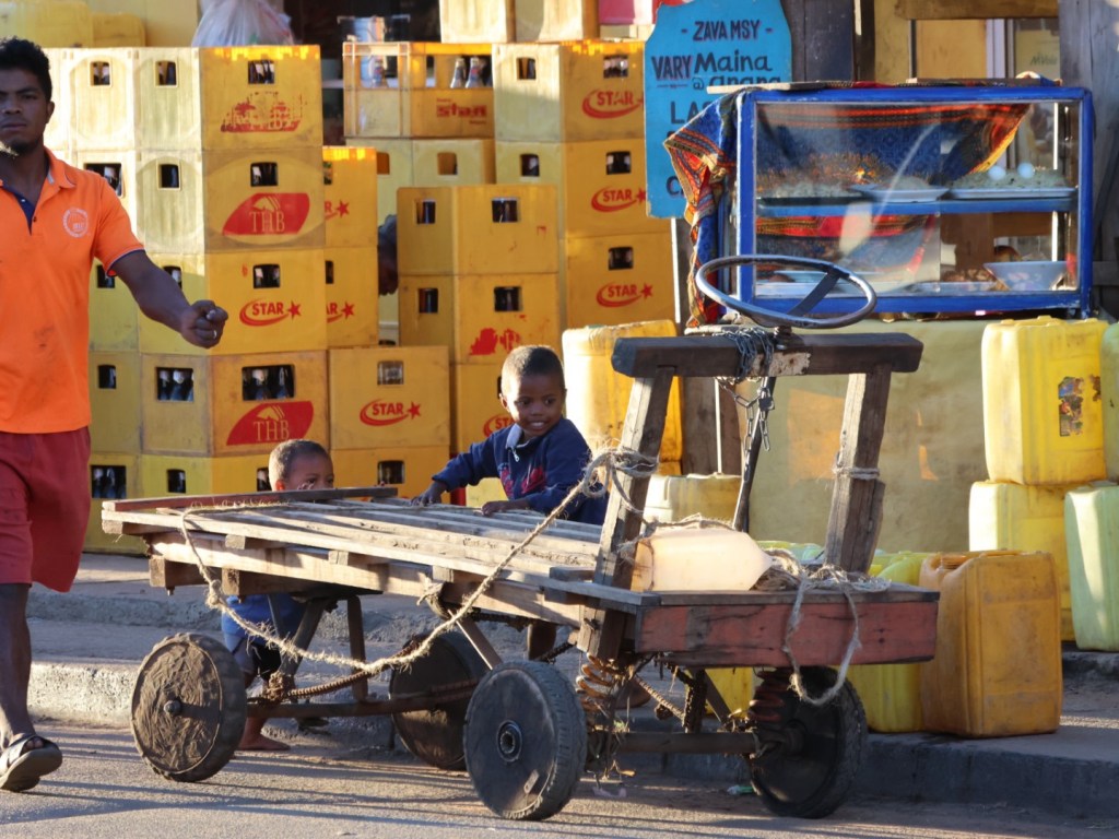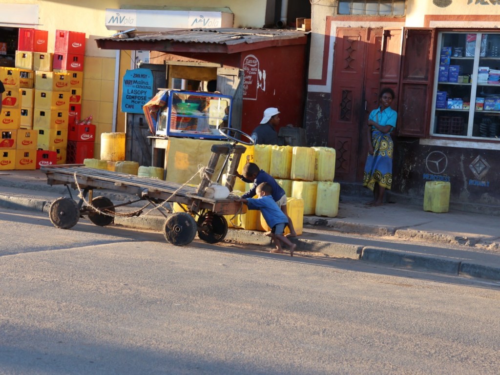 The road today improved out of sight. The day started out dodging and weaving around and through pool sized pothole puddles, and slowly improved from there to the point we hit a new top speed of 80/85kmph. We still needed to dodge and weave between all the local traffic-lots of Zebu carts, zebu herds being driven along the road, a few pushcarts, push bikes, tuk tuks, trucks, the overloaded local buses and soooo many people walking along the road.