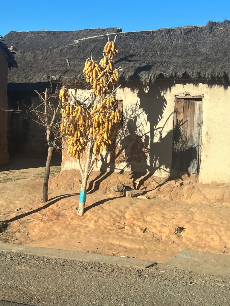 Not sure if I’ve mentioned it previously but we feel quite at home amongst the many gum trees here in Madagascar and in Africa too. They are used as wood for everything. The essential oils we stopped to smell yesterday has a eucalyptus one – which was lemon scented. The lemurs will evidently eat the gum blossom/flowers – not the leaves though. Parts of the plateau reminded me of driving through dry county at home. Very few trees dotted amongst the grass plains.