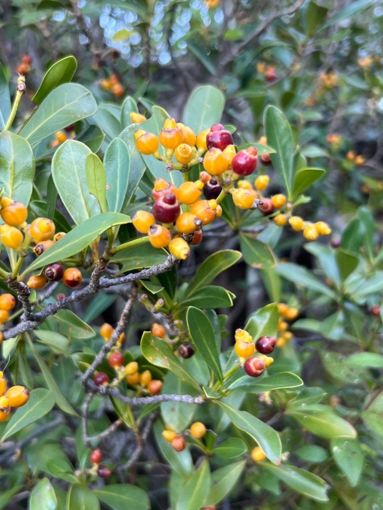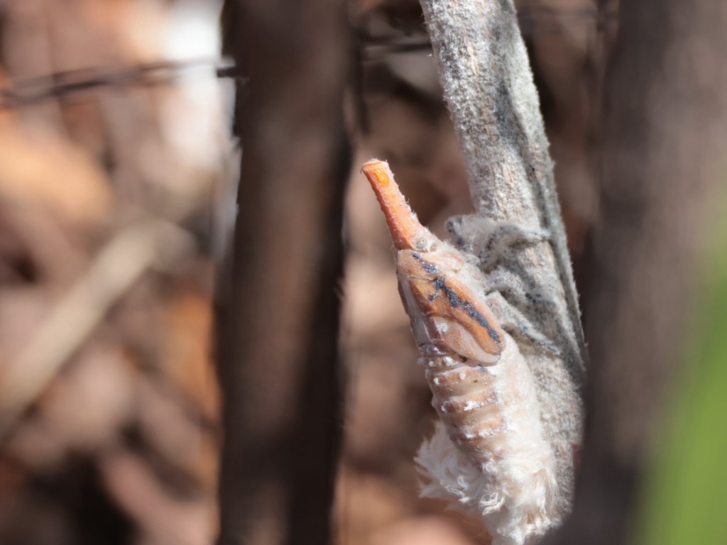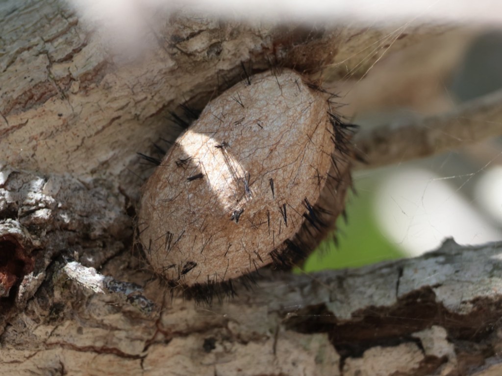 Tapia tree. Wild silkworms make their cocoons here. The fruit requires fire to generate. The cocoon is prickly for protection and also the caterpillars have the spikes. The people also eat the worm. The bark of this tree is super fire resistant and is so cracked and craggy, super cool. It’s also not a particularly strong wood.