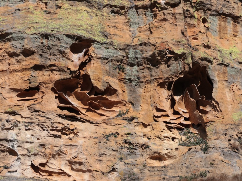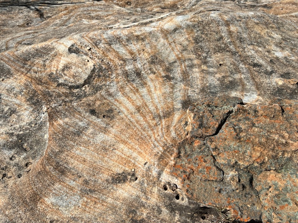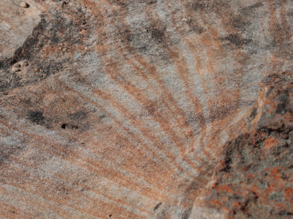 Iron deposits make interesting patterns across the rock