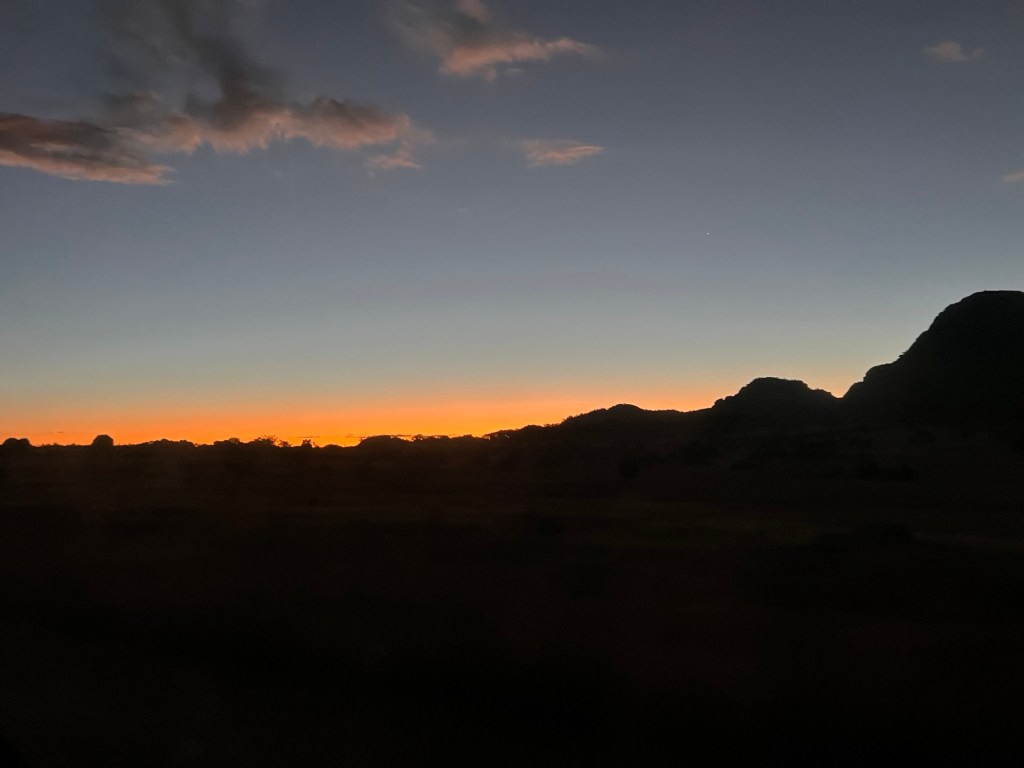 Unfortunately the best of the orange colour was on our way home in the car. Which were impossible to capture at speed and the trip home was just a little too long to catch it from the lodge.