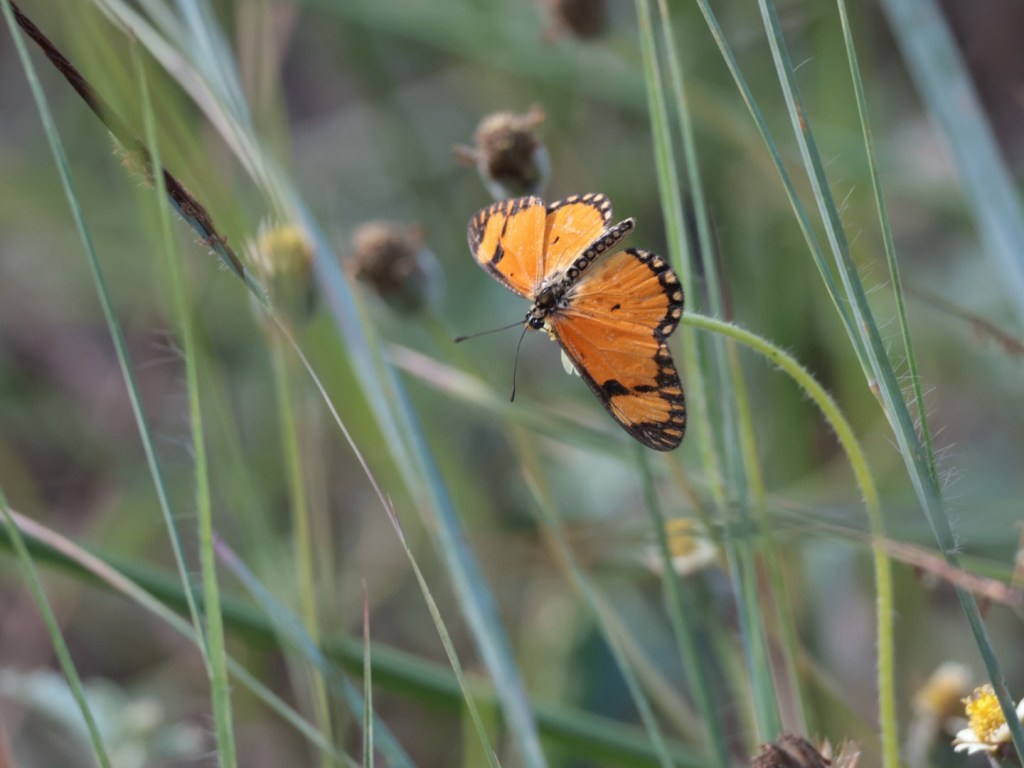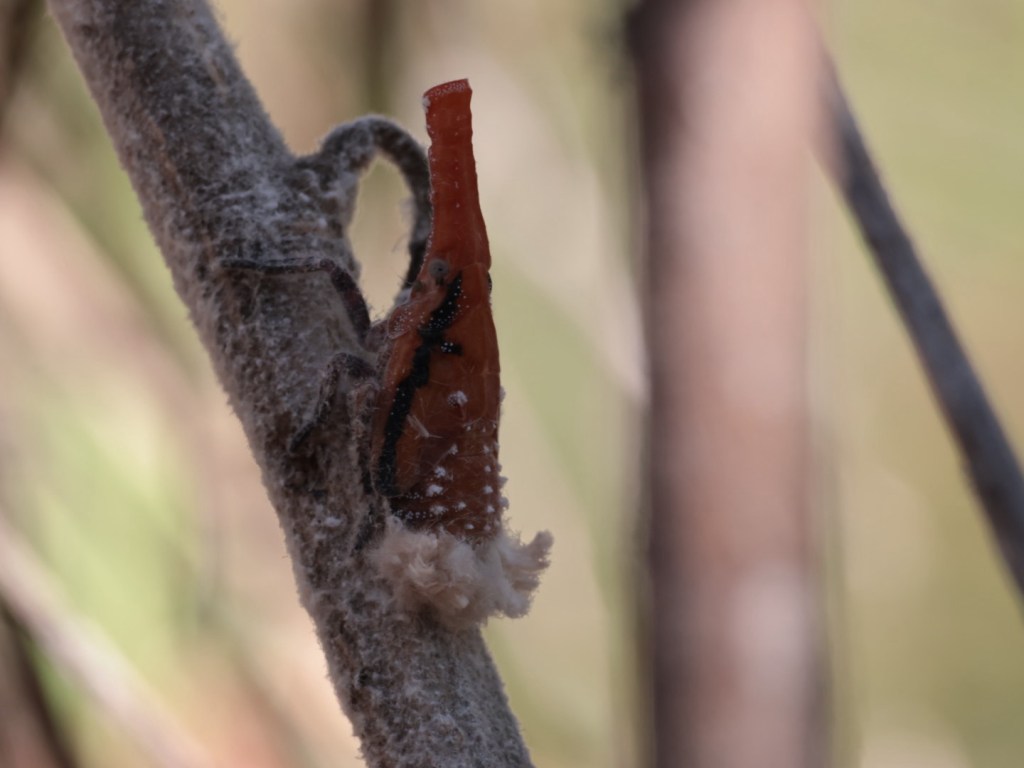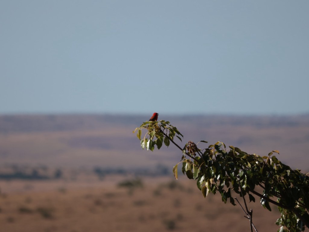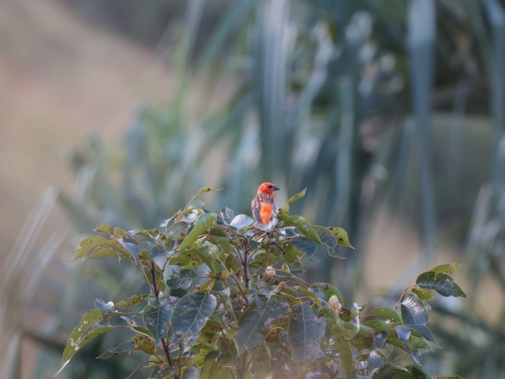 Fody bird. Red feathering during ‘love’ season. Otherwise a plain brown bird. I have been seeing them occasionally from the car but they are flitty and gone in a flash. Very pleased to see one even if it is a way off.