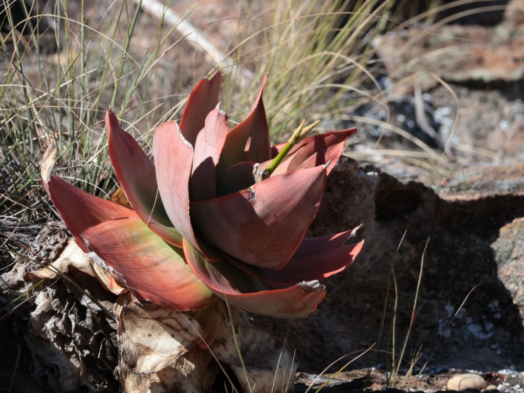 Elephant foot plant (can live for 170 years) and Aloe and Napoleon’s hat (in front with flowers)