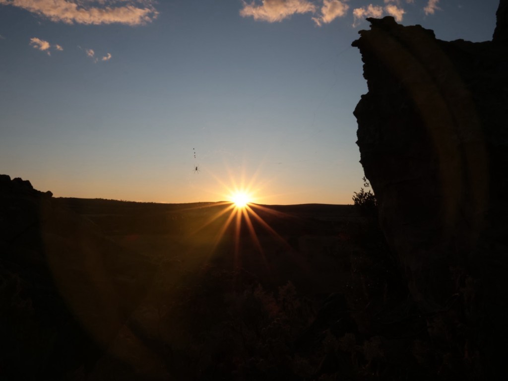 There were quite a lot of people at the window so we couldn’t really see the sun through it. Some nice golden hour colours on the rocks.
