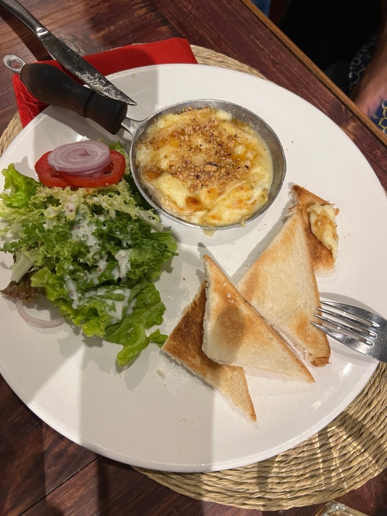 Benj had arranged dinner upstairs in the Sakamanga restaurant. We had a drink down beside the pool first. Another Madagascan gin we tried. A bit different but it grew on me.
