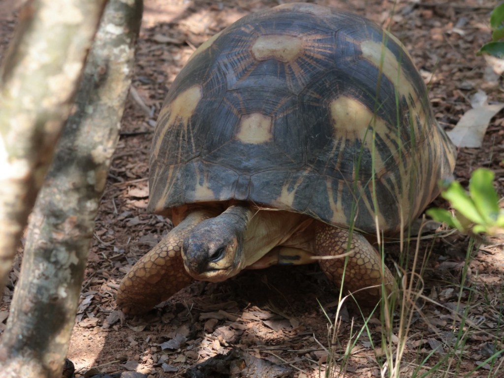 Star tortoise. Live to 130-40 years. These are about 50 years. The ‘baby’ one is 7-8 years old and about 20cm long while the parents would have been 40 -50cm long I reckon.