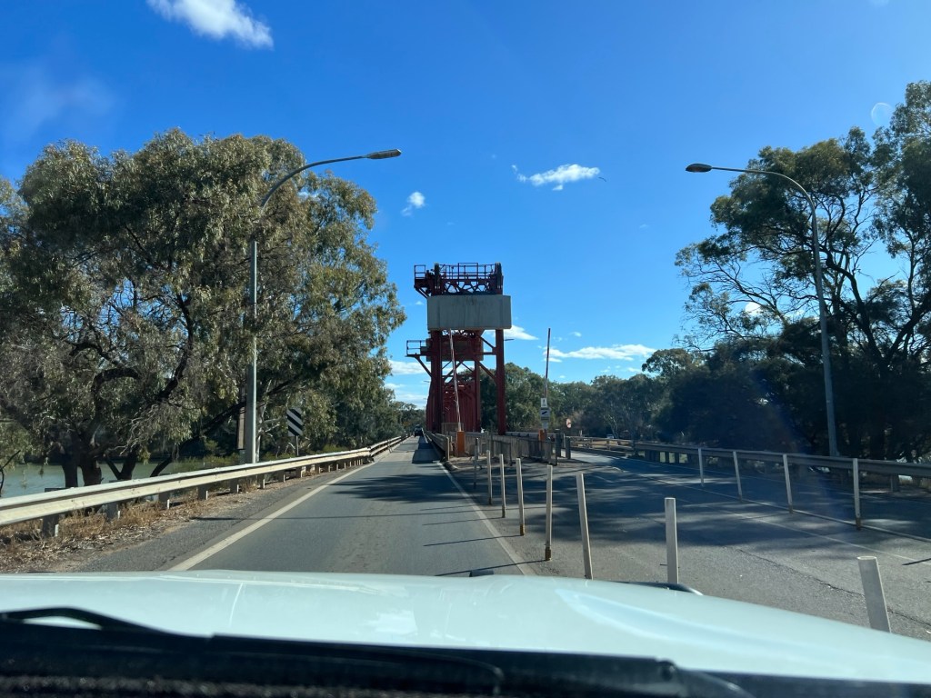 The fruit fly quarantine was next challenge. We had eaten all the fruit in Mildura, or so I thought. I remembered an apple and was able to dump it in the bin prior to the station. The man was lovely but checked everything out – console, glove box, the back seats, the fridge and drawers in back of car and then I had to open the camper for him to check those drawers too.