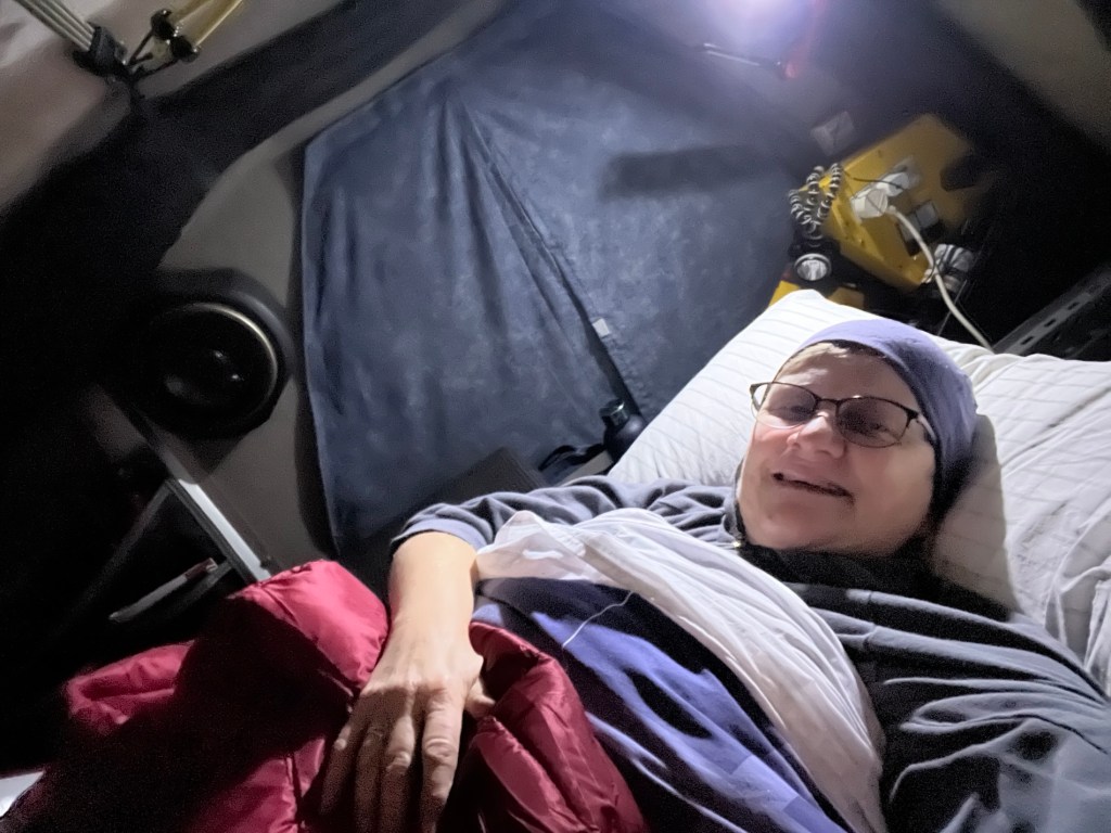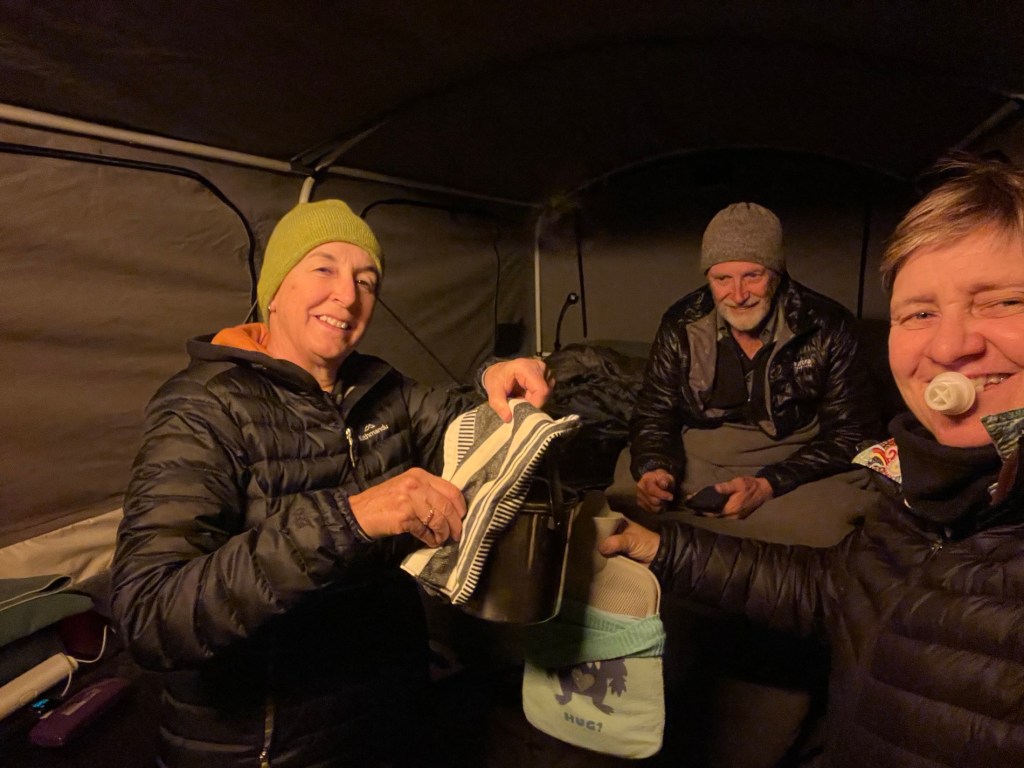 Home to set up, do teeth, phaff a bit, fill water bottle, set up toilet tent with Porta potty and fill hot water bottle and get to bed.