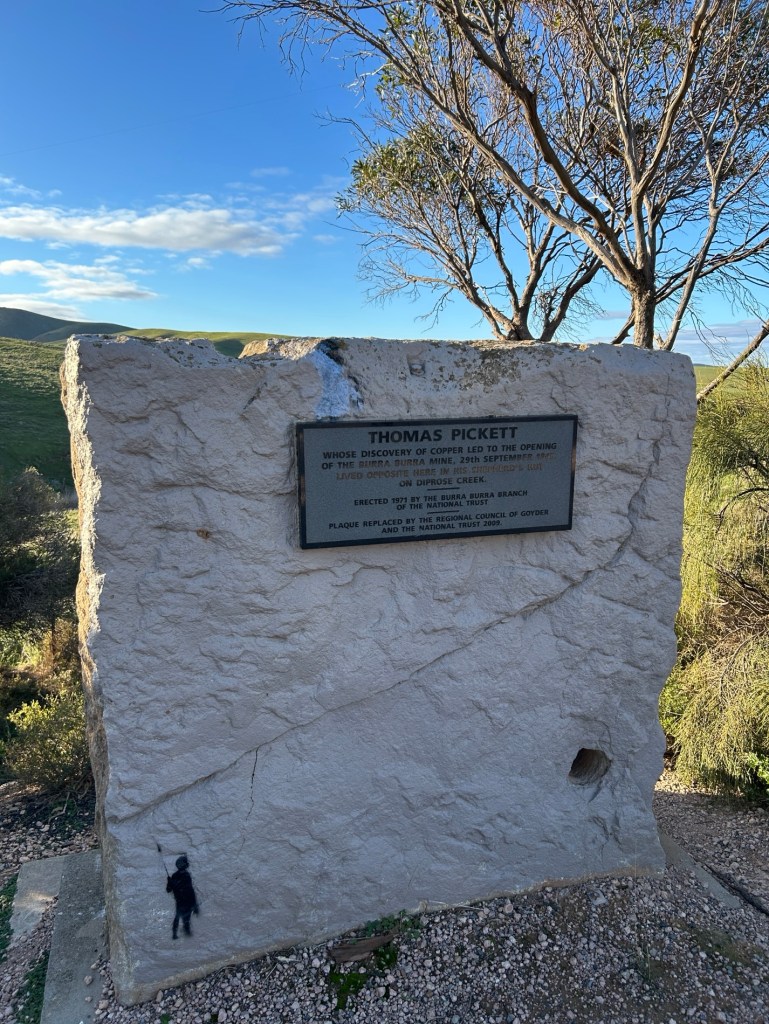 A brief stop to stretch our legs just before Burra at a cairn dedicated to Thomas Pickett