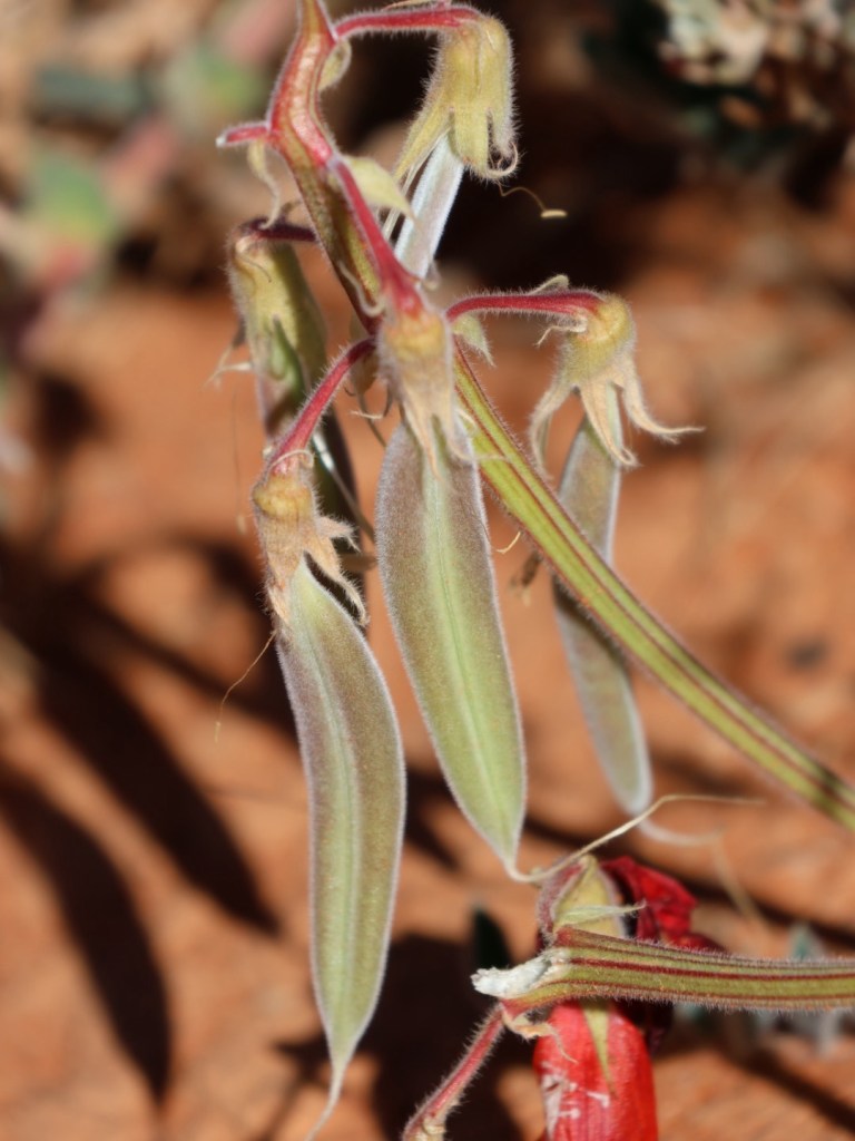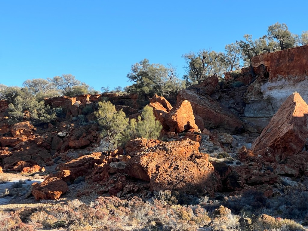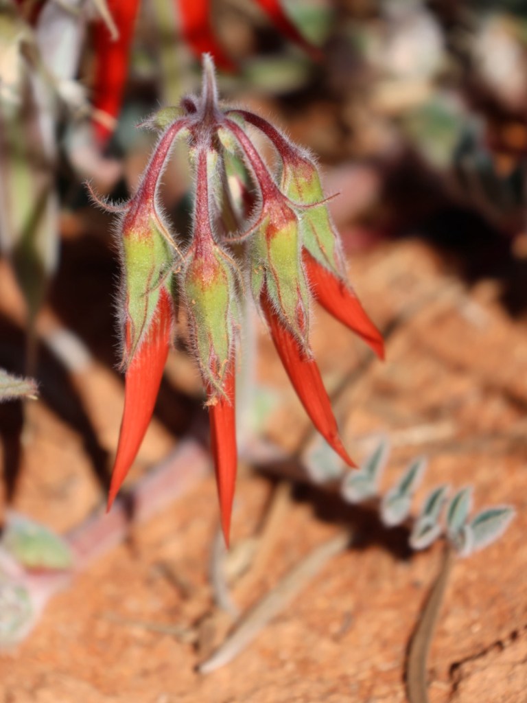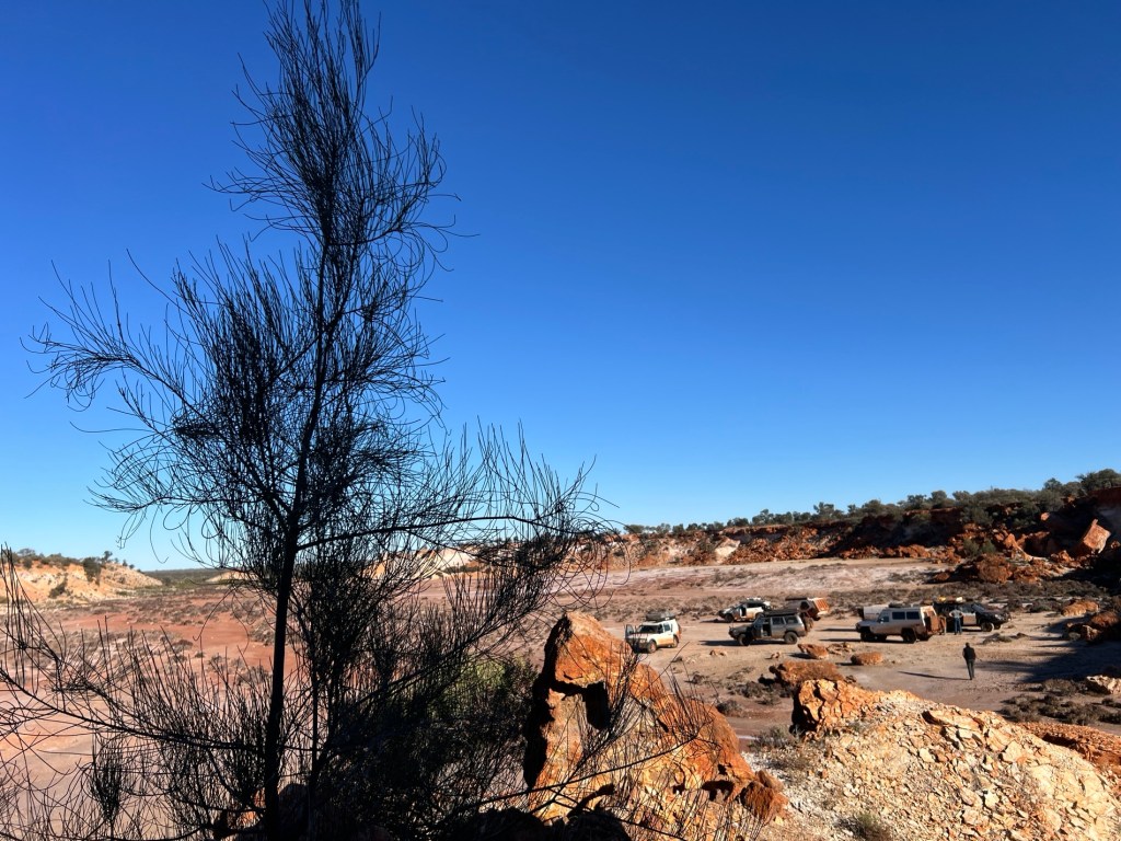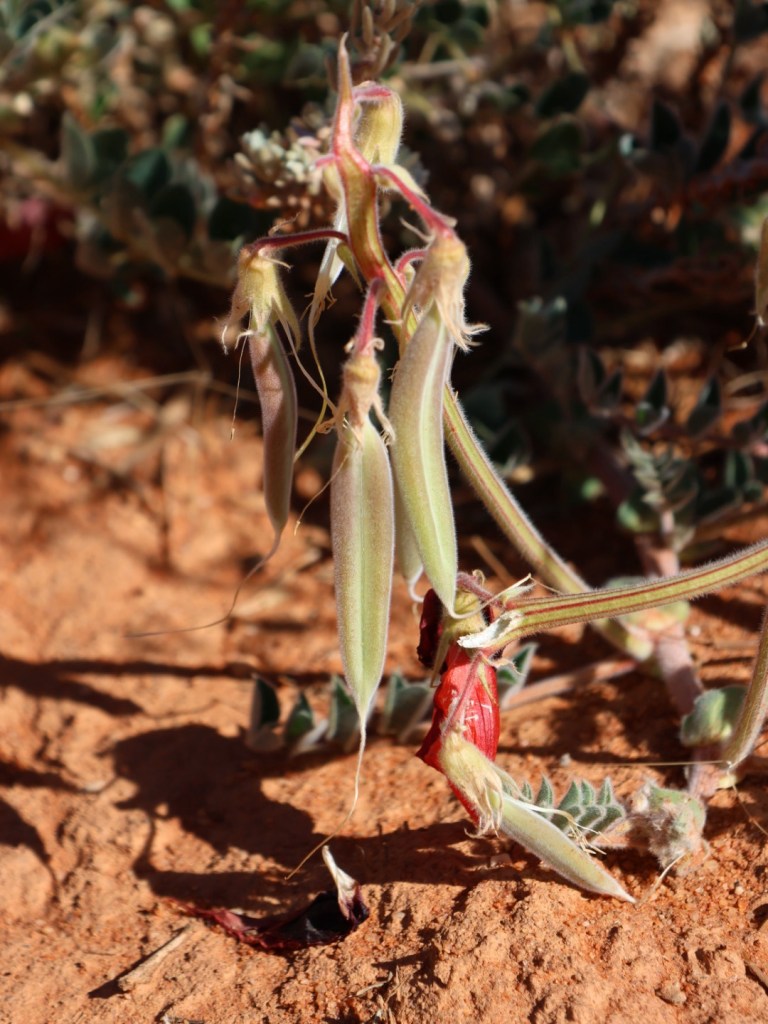 Sturt Desert Pea spotted by Phil just outside the lunch stop, so three of us reversed for a look. Astoundingly Steve’s first wild Desert Pea.