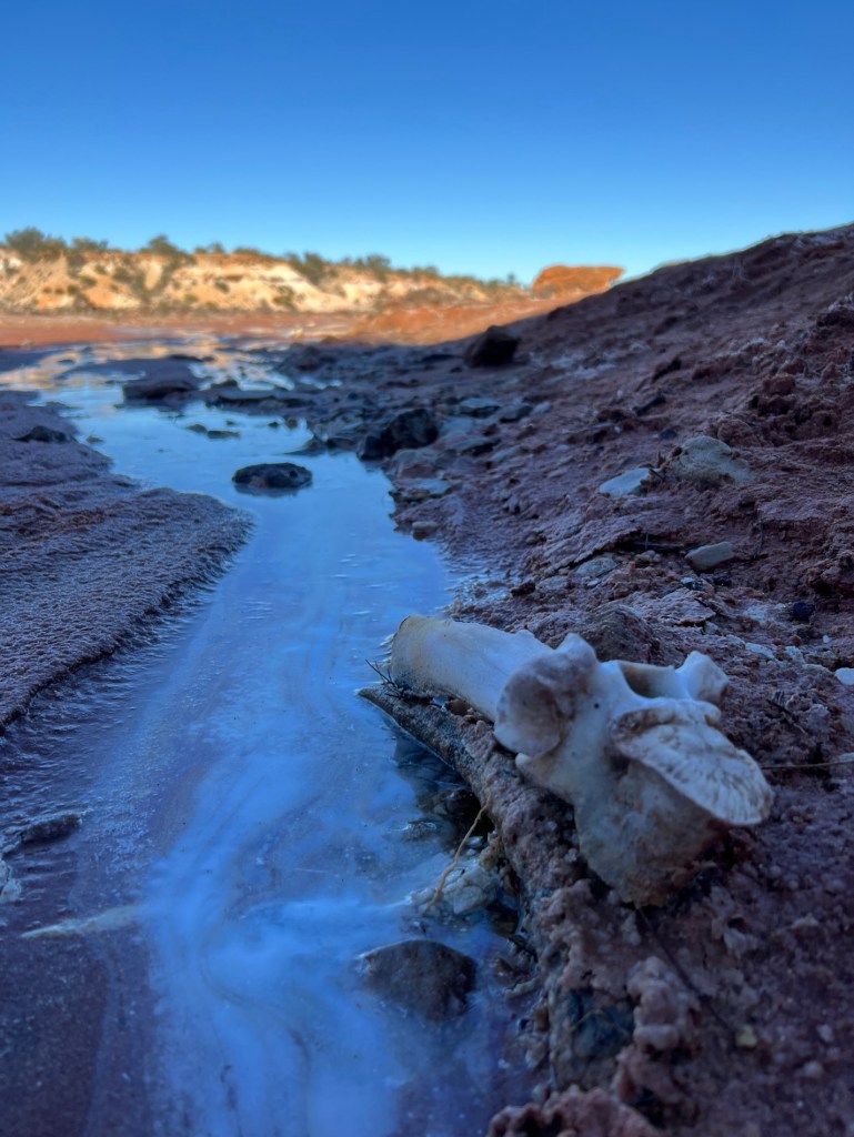 Had time for a bit of a walk around the wall behind camp this morning. So many colours and textures in the rocks. Salty, chalky, reds, burgundies, white, cloudy and clear water, camel bones, and the odd hardy shrub and tree.