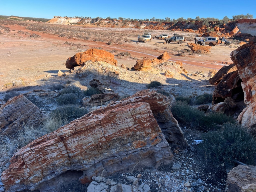 We were caught in rain yesterday so are holed up in Rawlinna having made it though some slidey patches. We arrived in rain and had to stay overnight – so I was actually sending that one about 12:30 our time in WA so probably arrived late there.