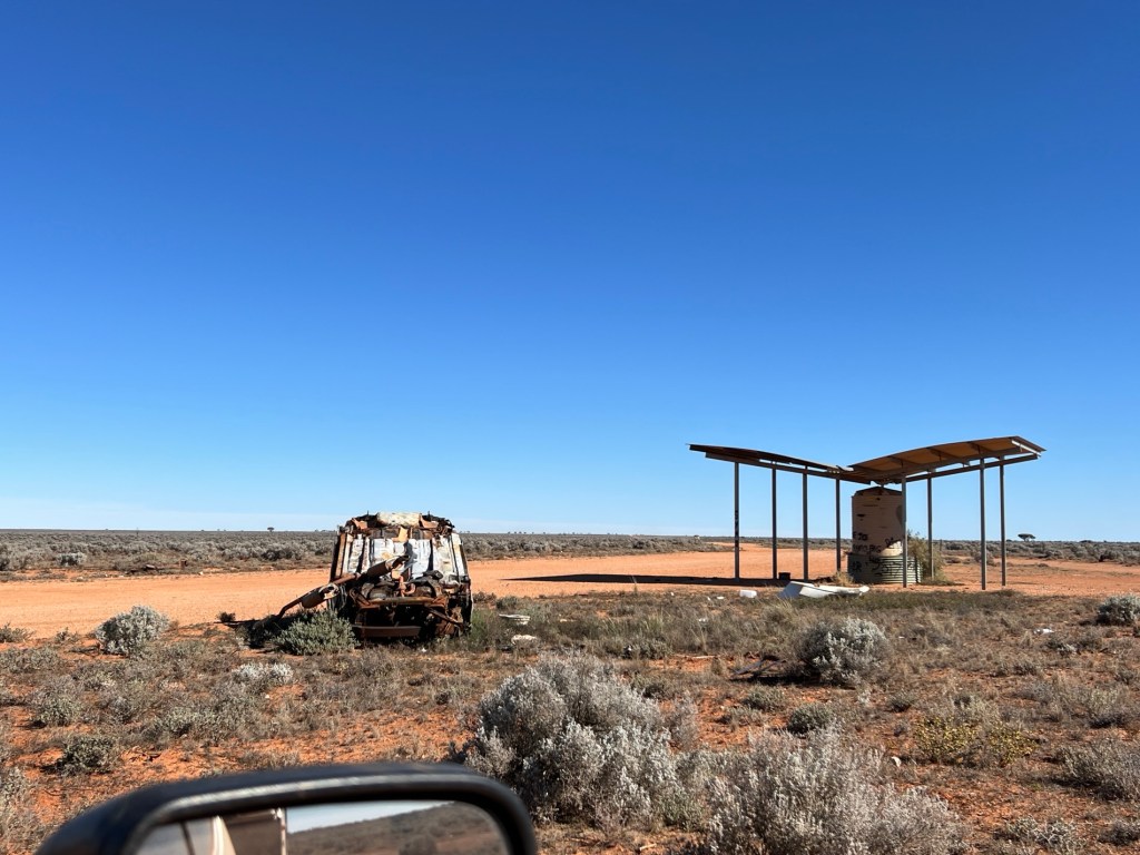 Then we were on an almost treeless plain. Strangely we had only seen one wreck since Warburton on the CSH. Now we’ve seen several since turning right.