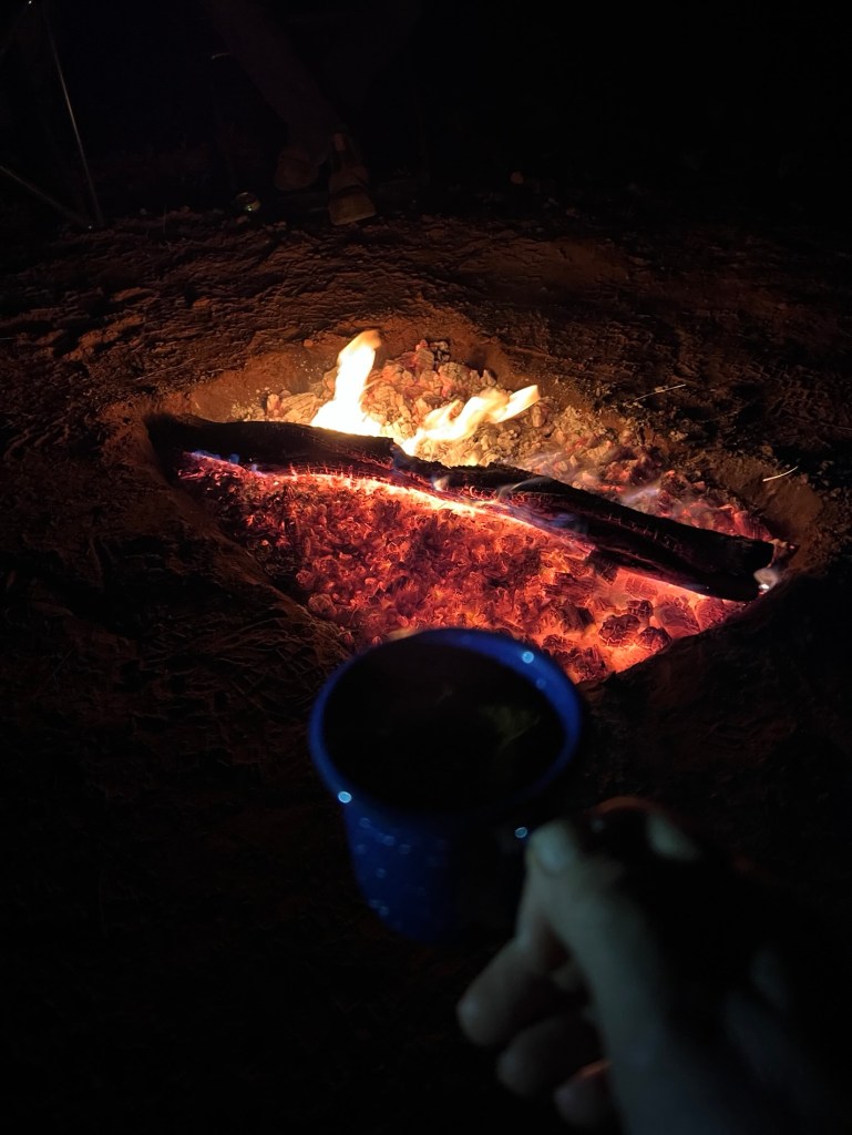 At 5:00 we are sitting around a warm fire listening to the roast cooking in the camp oven and catching up on the blog and world news.