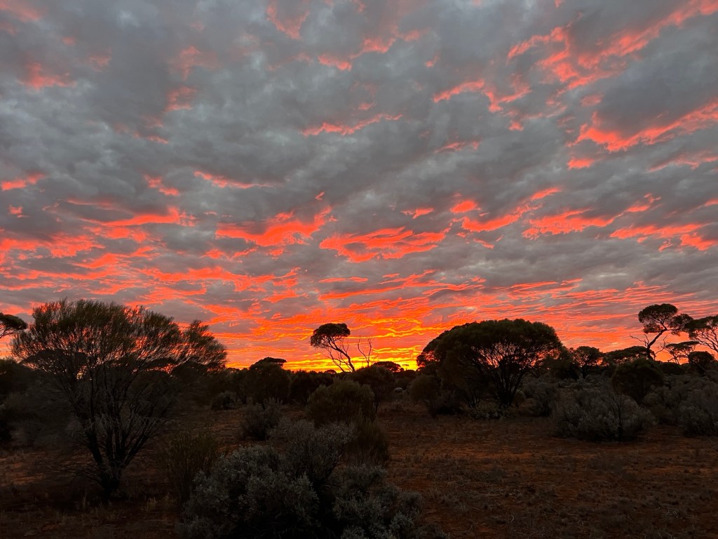 Turns out the older bloke was Nicole’s dad visiting from QLD. Nicole and her partner are in charge of things here, they help arrange the Friday Indian Pacific stop – where passengers actually get off and eat a meal here with a musician and fires in drums etc. Nicole is also in charge of knowing about road status. Steve chatted to her and learned the roads are closed and we should plan to go nowhere today and she would advise us of conditions tomorrow. She pointed out the campground and that’s where we headed.