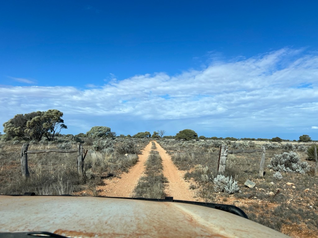 Drove through an old gate in an old fenceline. Perhaps the forlorn remains of Premier Downs Station?