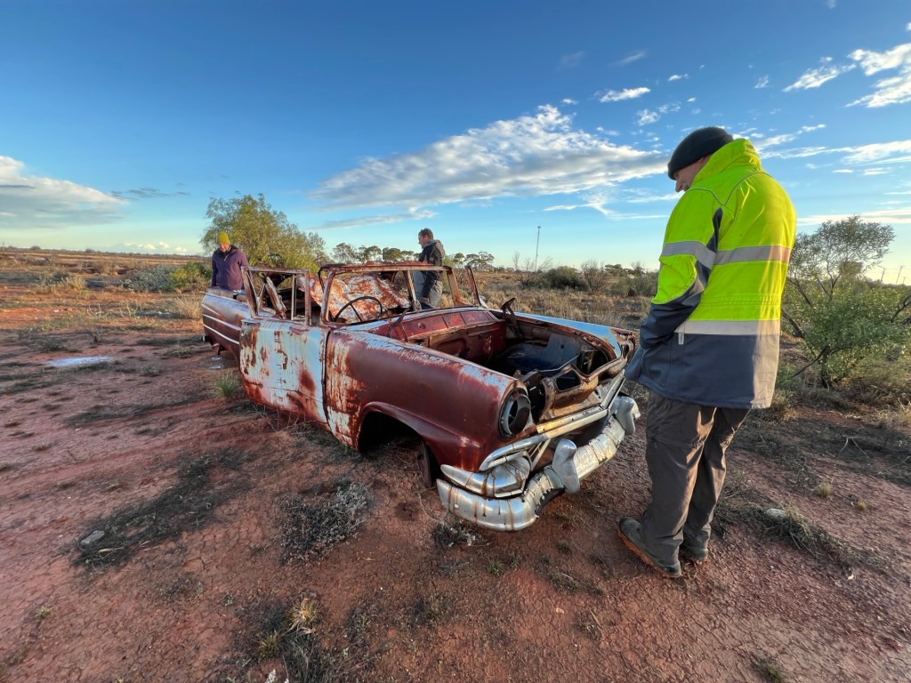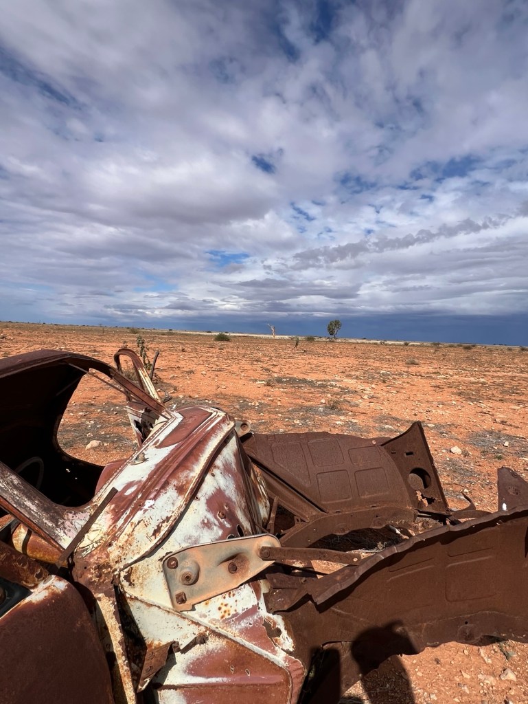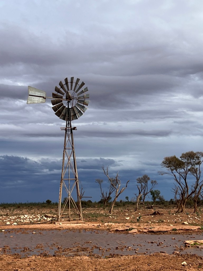 Premier Downs Homestead ruins are definitely ruined, there was a concrete floor of a house and some dead fridges, there was an old vehicle and a truck and then there’s a working windmill and stock troughs with plenty of water. The storm clouds provided some good background for shots, not sure what they’re gonna bring or how we’re going to drive into the rain rather than around them.