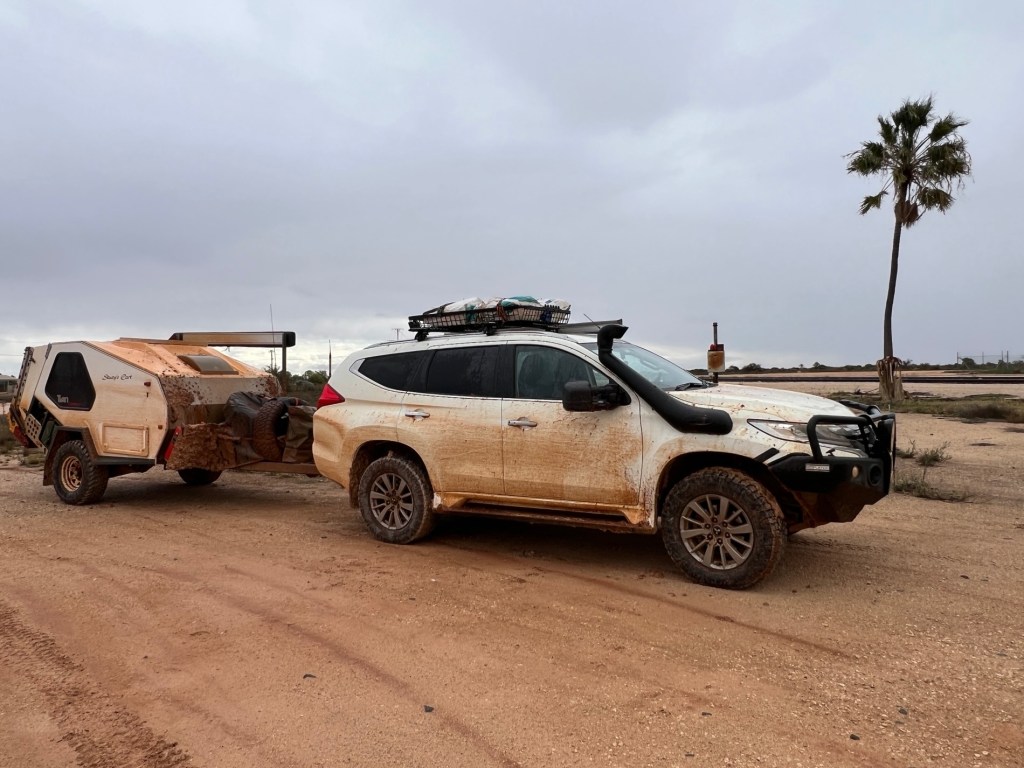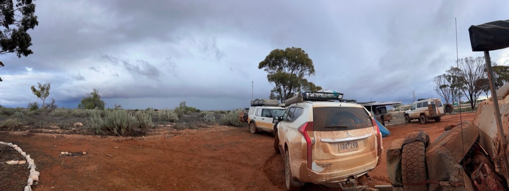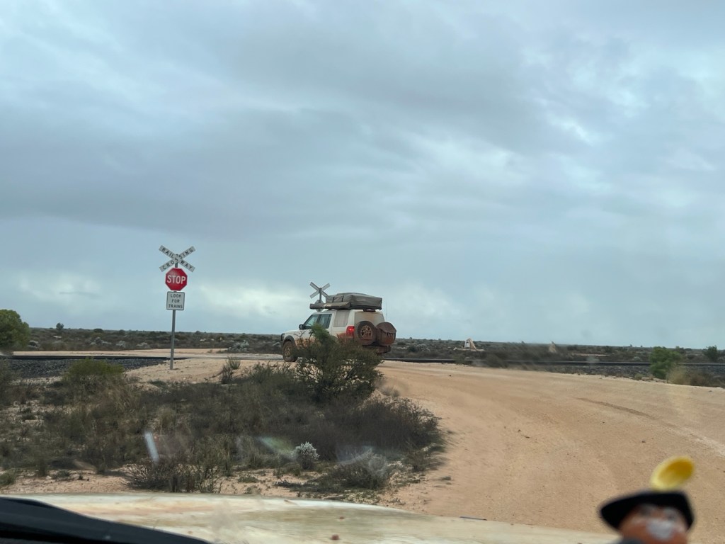 Anyway after a few sliding patches where we all managed to keep everything straight, we travelled up to the Trans Continental Railway Line at Rawlinna. A lot muddier and wetter than we’ve been for a while.