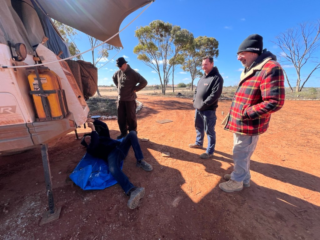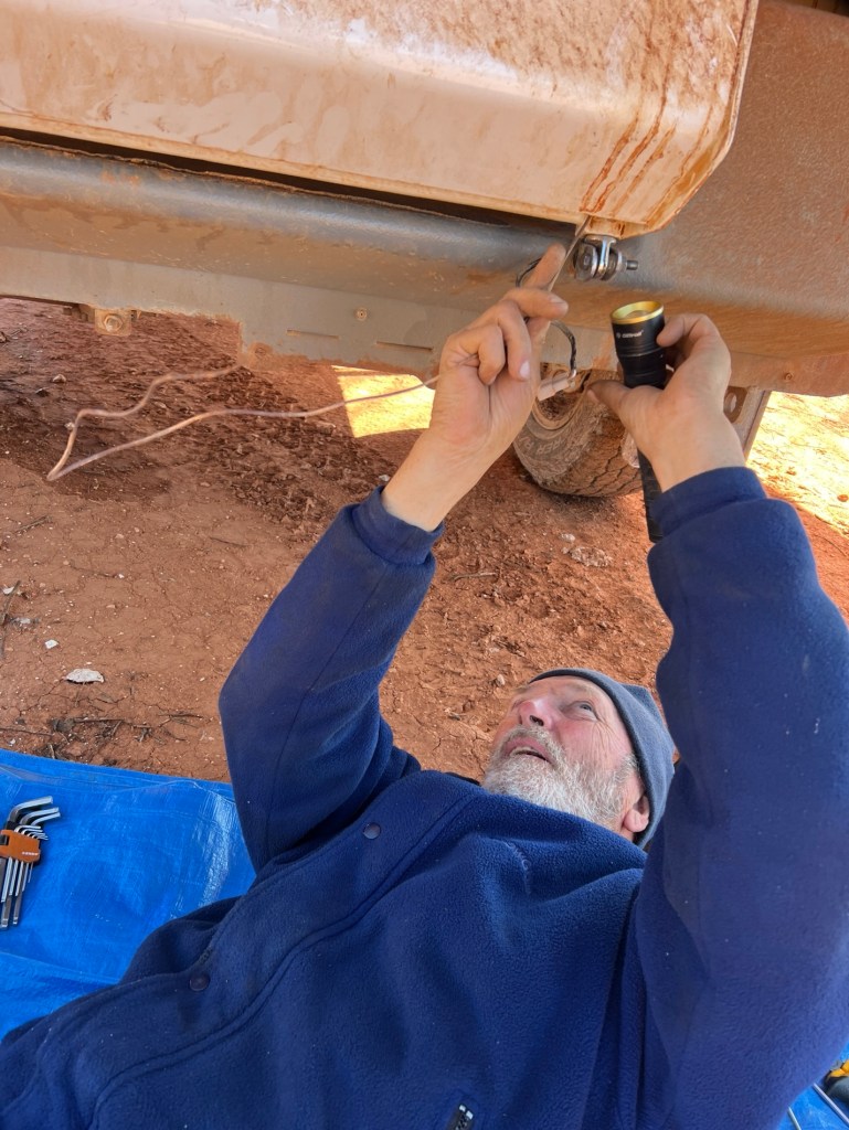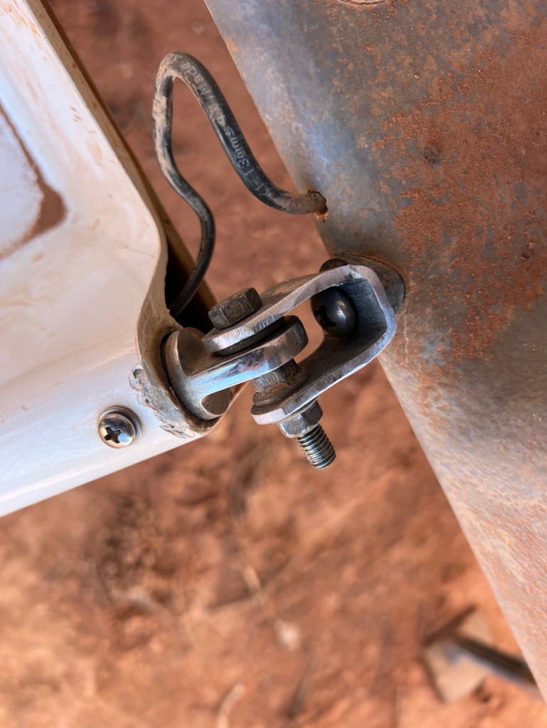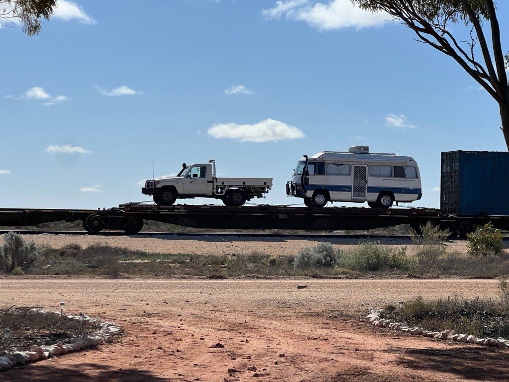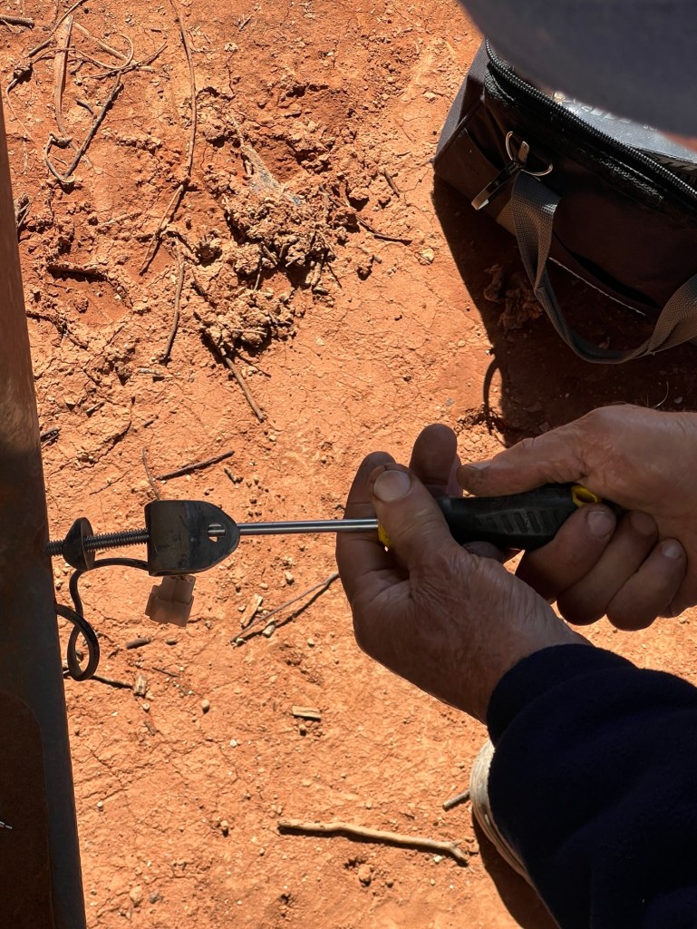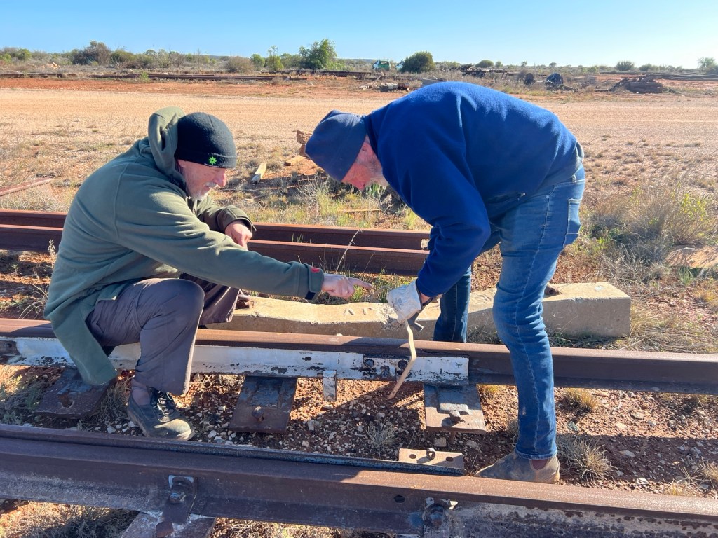 It was quite the morning’s job. It required the angle grinder, Steve’s drill, another trip to the “Rawlinna Hardware Store” – the three wrecks and the offcut railway bits and pieces over the tracks.