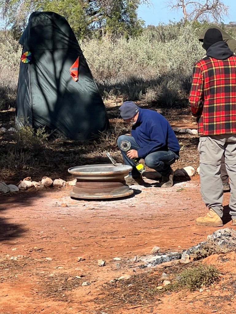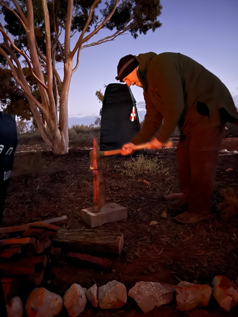 The fellas collected some offcut wood for the fire. Beautiful red – maybe Jarrah or red gum sleepers.