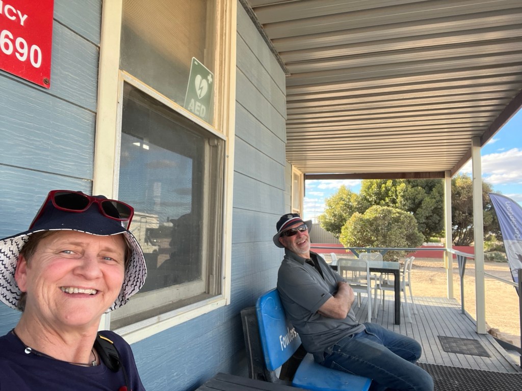 Well, we didn’t catch him until Fowlers Bay. He couldn’t restart the car once he stopped or close the window. A quick jump start and we all got almost the very last sites in the CP. Mary ran into an ex colleague from Maryvale Hospital as we were checking in so they joined our group in four unpowered sites for $100 – very good value.